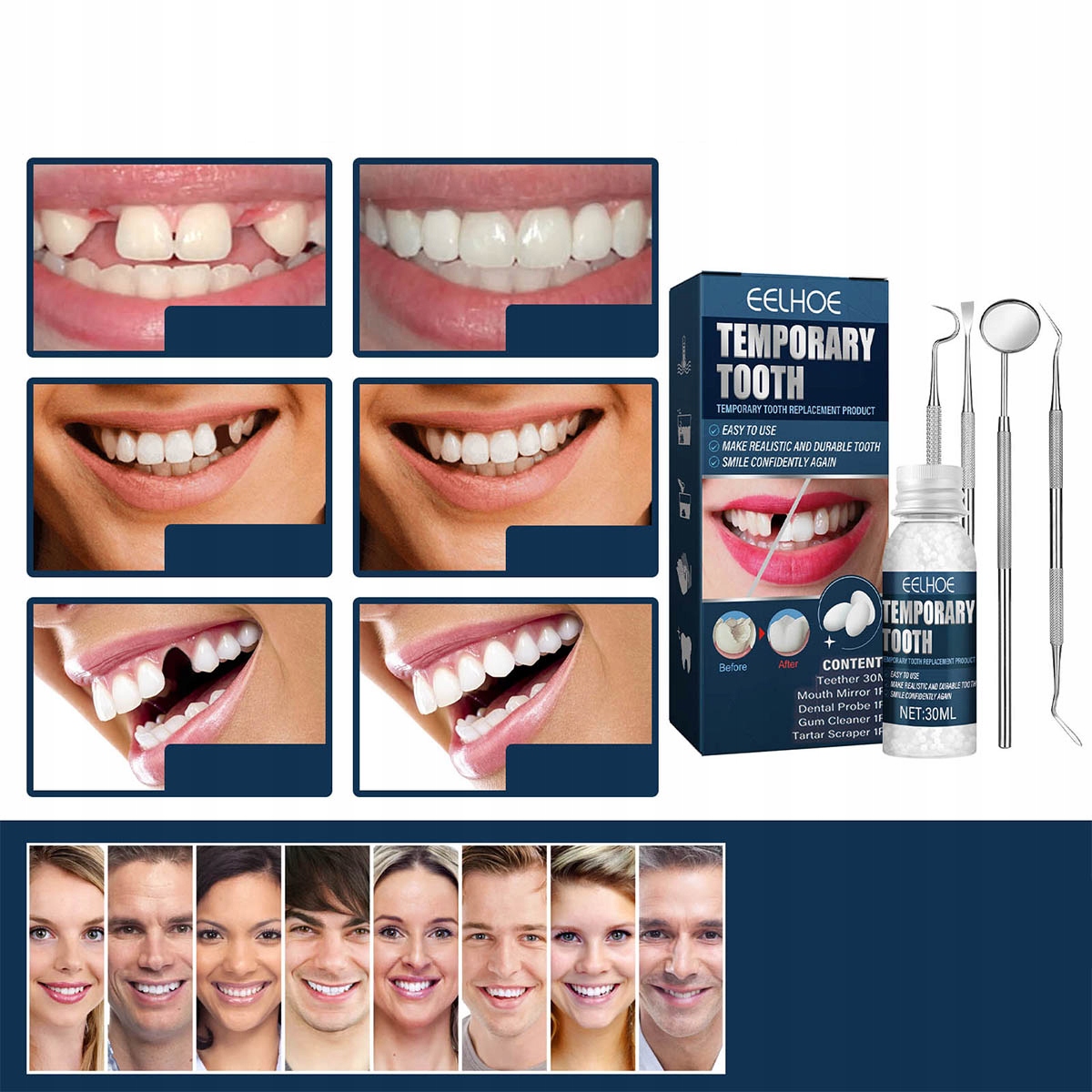 Набор для ремонта зубов можно использовать для временного восстановления отсутствующих и сломанных зубов, помогая людям, потерявшим зубы, быстро вернуть себе красивую улыбку.