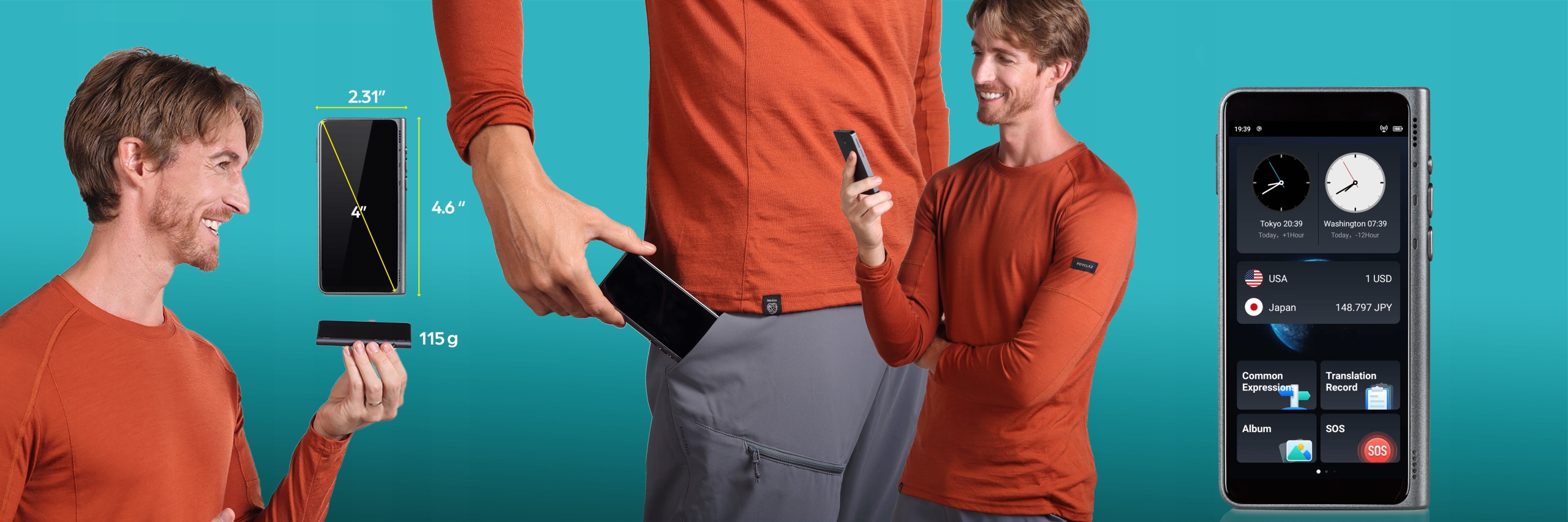 Компактный размер с 4-дюймовым дисплеем легко поместится в кармане. Сенсорный экран с разрешением 540x1080 предлагает выбор режимов перевода, а также отображение часов с мировым временем и текущим курсом обмена валюты. При весе всего 115 г вы даже не почувствуете его в рюкзаке. Вы также можете перевести свои высказывания и сохранить их в виде текста в переводчике или просто сохранить быструю голосовую заметку.