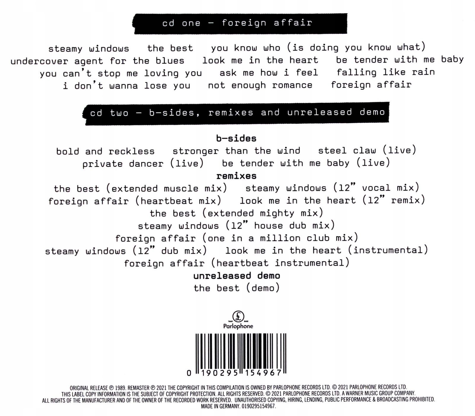 TINA TURNER: FOREIGN AFFAIR (2020 REMASTER) [2CD]