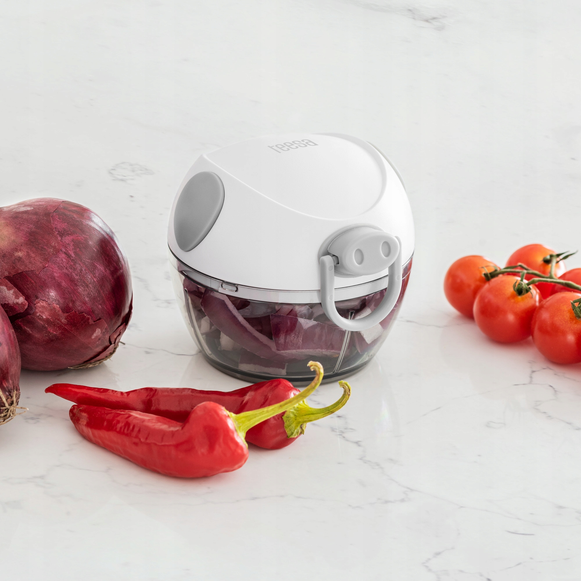 Используйте измельчитель Teesa's Shredder, где вы хотите! Устройство было построено таким образом, что вы не ограничиваются диапазоном кабелей. Секрет быстрой и эффективной работы - это струнный механизм. Все, что вам нужно сделать, это потянуть закащенную струну, чтобы несколько раз двигаться, чтобы установить лезвия, и все ингредиенты будут нарезаны должным образом.