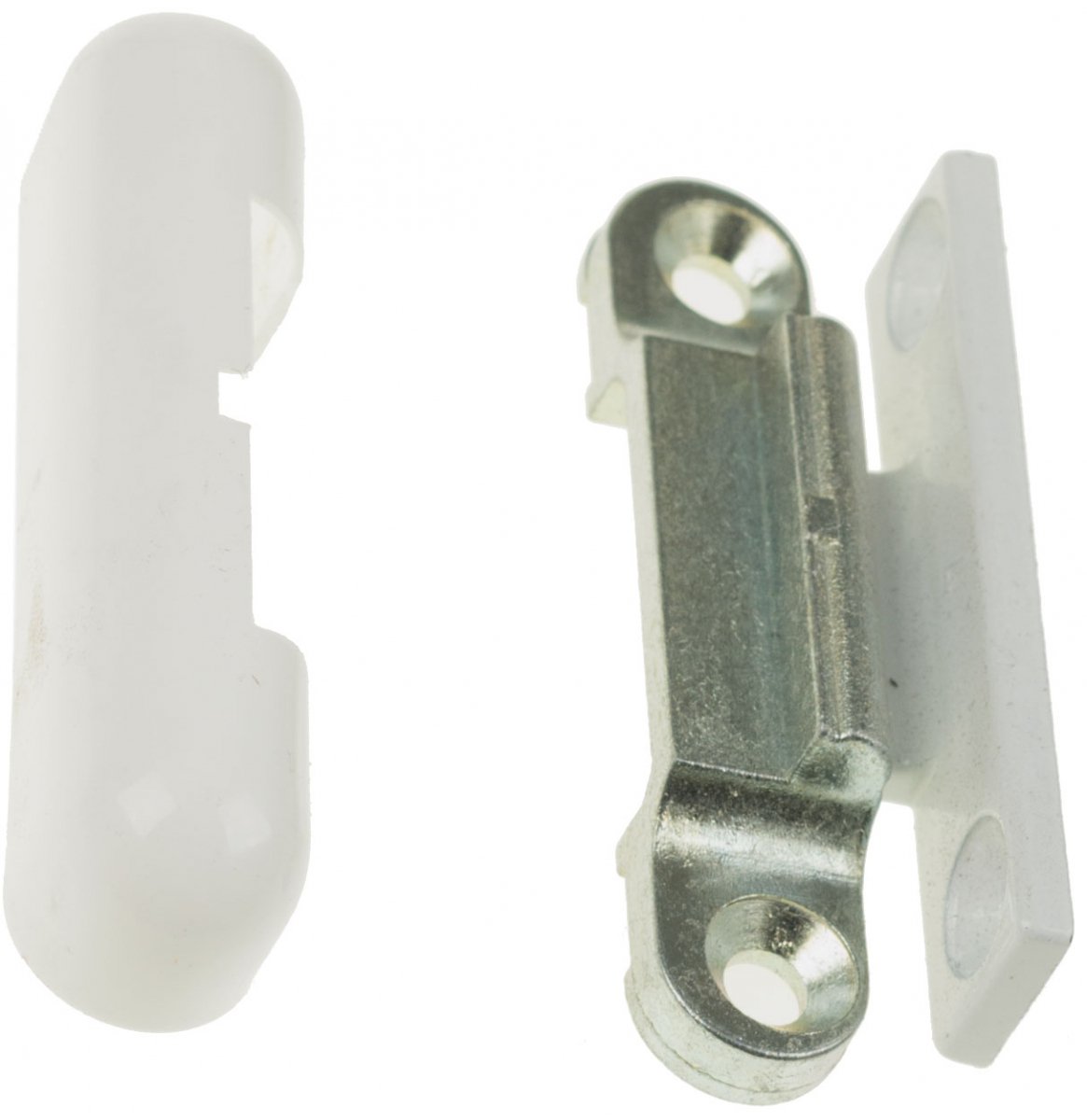 В комплект входит фиксатор и пластиковая крышка для маскировки металлического элемента. Часть прижима к раме и створке в заводских условиях соединена заклепками, что очень упрощает монтаж, элементы разъединяются автоматически при первом открытии двери/окна.