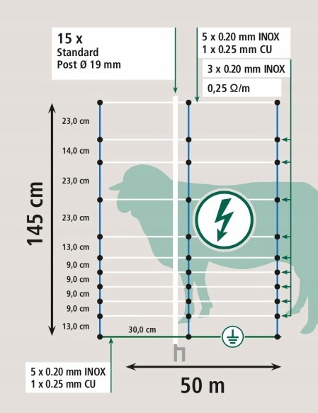- Высота: 145 см (11 горизонтальных проводов);