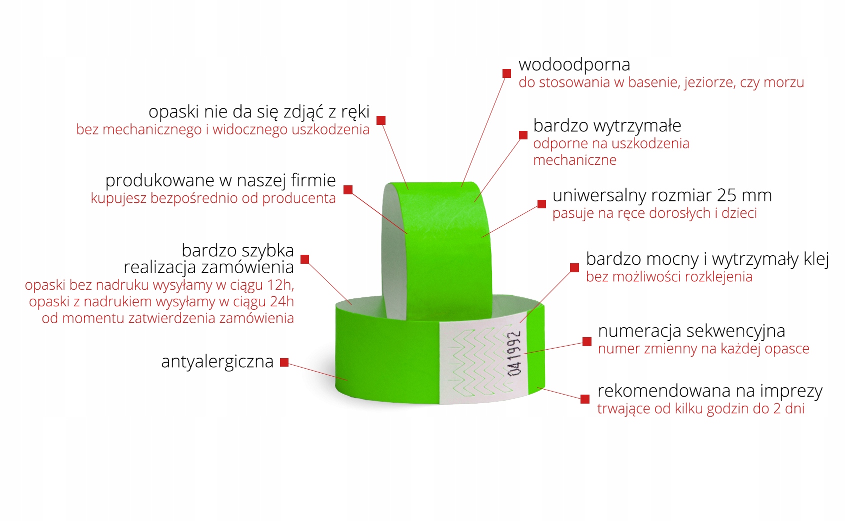 Идентификационные браслеты, разовые билеты, идеальные на любой случай, очень прочный, долговечный, водонепроницаемый и антиаллергенный. Браслеты пронумерованы, самоклеящиеся и имеют собственный очень прочный клей, что делает их пригодными для многодневных мероприятий.