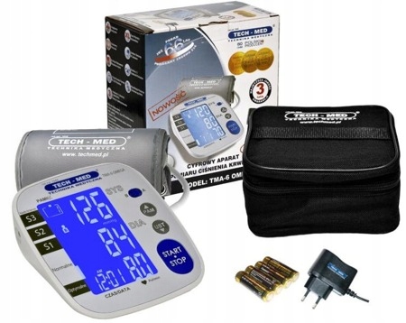 TECH-MED TMA-6 OMEGA — современный тонометр для пожилых людей с повышенным артериальным давлением, которые ценят удобство измерения. Тонометр отличается высокой точностью измерений – эквивалентной точности измерений, производимых путем аускультации с помощью механических сфигмоманометров квалифицированным медицинским персоналом. Эта точность подтверждена клиническими испытаниями. Выполнить точное измерение артериального давления чрезвычайно просто – для этого необходимо нажать всего одну кнопку. Очень большой эргономичный ЖК-дисплей обеспечивает легкое считывание результатов измерений.