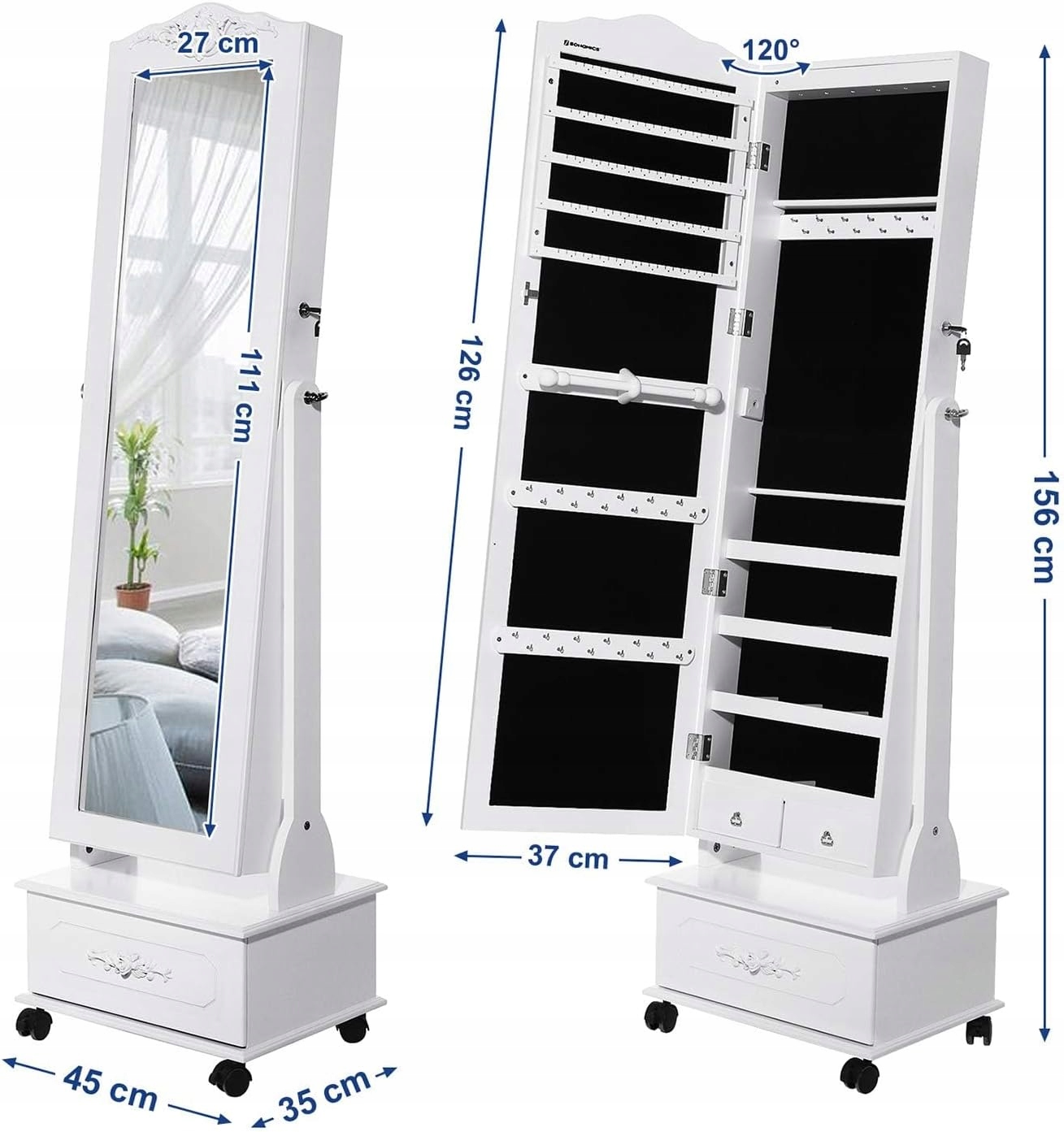 Toaletka z szafką na biżuterię i lustrem biała