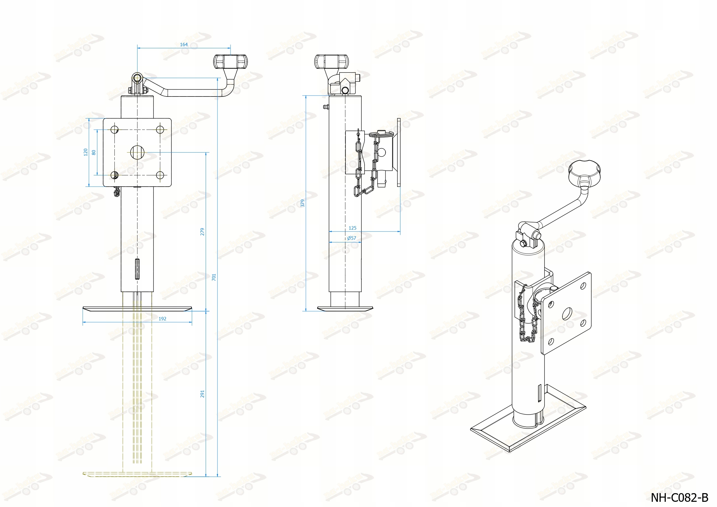 Поддержка сплавного трейлера Регулируемая нога 1200 кг