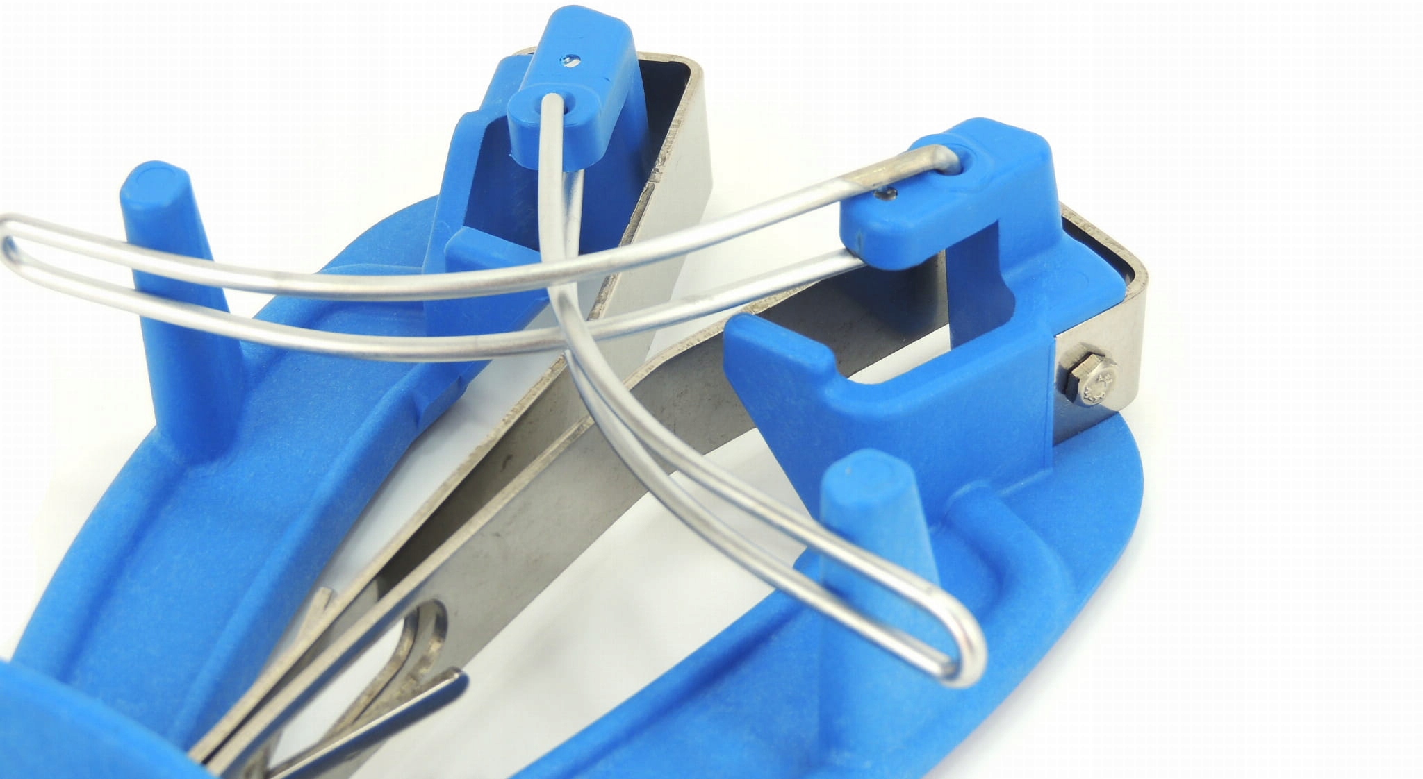 Точилка поставляется с держателем из нержавеющей стали, который позволяет прикрепить точилку к столешнице или стене.