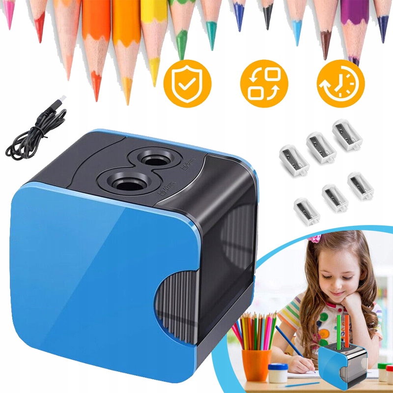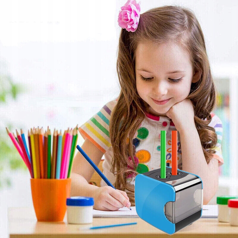 ЭЛЕКТРИЧЕСКАЯ ТОЧИЛКА ДЛЯ КАРАНДАШЕЙ, ДВА ОТВЕРСТИЯ, 6 СТАЛЬНЫХ ЛЕЗВИЙ