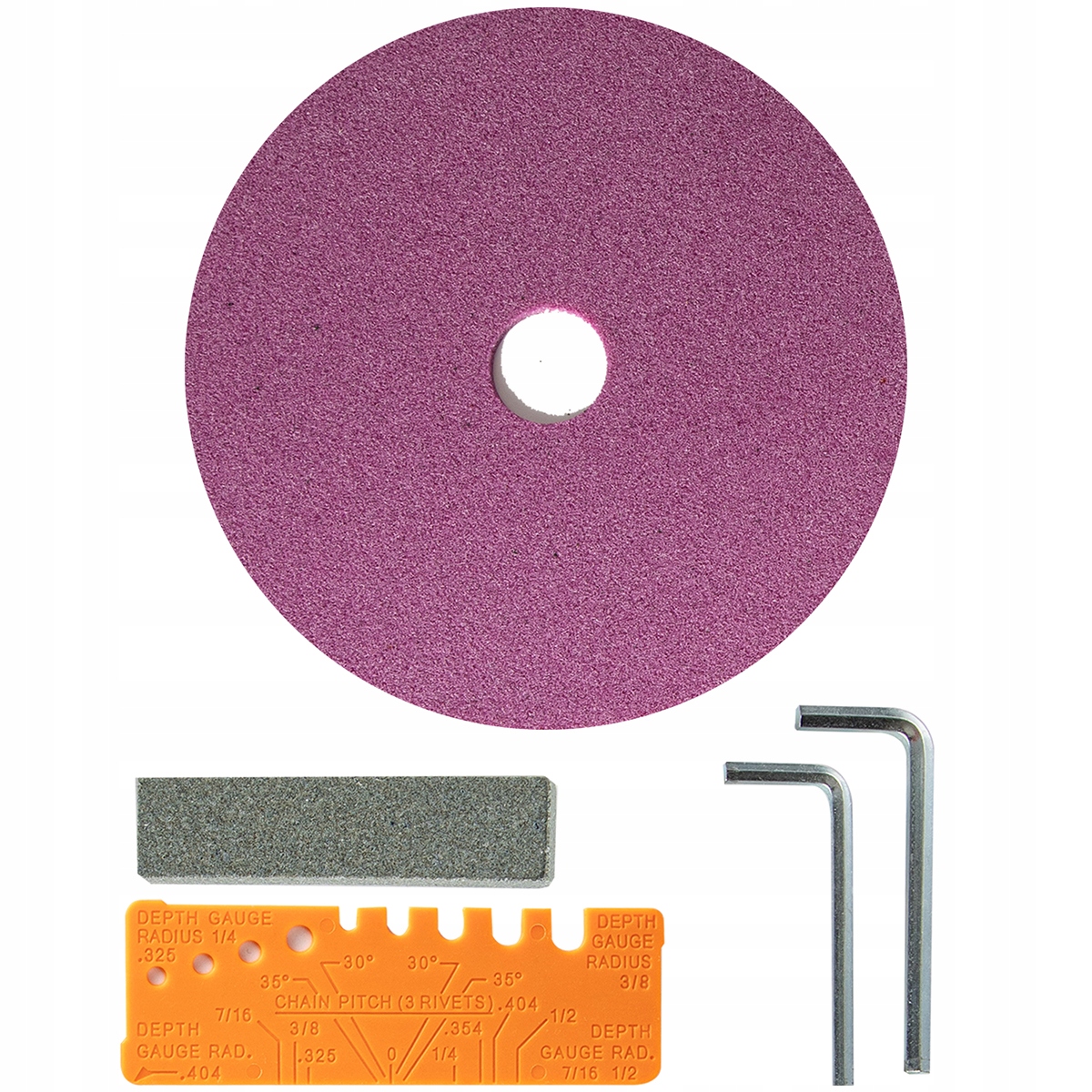 - Шаг цепи заточки: 1/4 дюйма/0,635 см, 0,325 дюйма/0,82 см, 3/8 дюйма 0,95 см, 0,404 дюйма/1,02 см