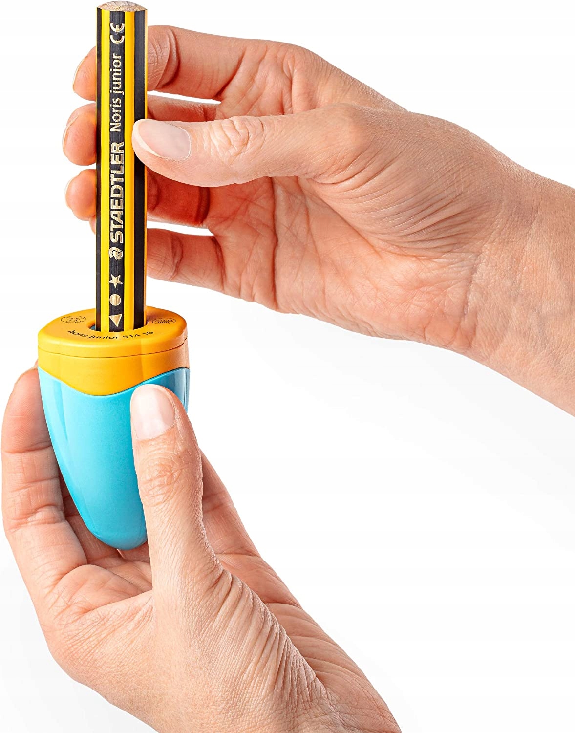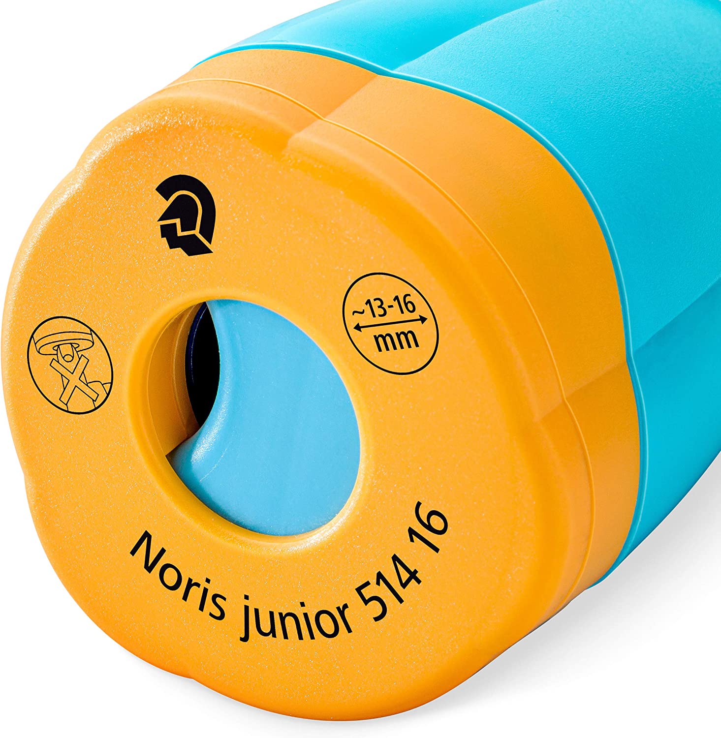 ✔ Точилка Noris® Junior для мелков и карандашей бирюзового и солнечно-желтого цвета, для использования с графитовыми карандашами Noris® Junior, мелками и восковыми мелками