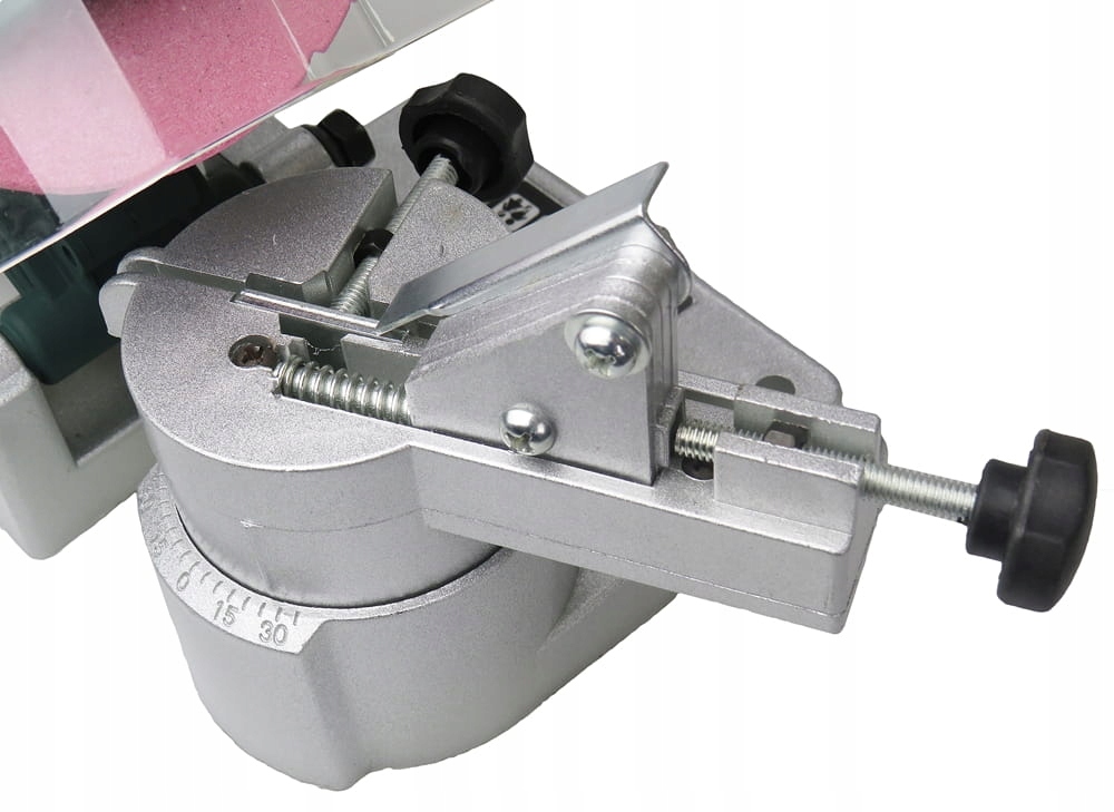 Точилка оснащена наклонными тисками, позволяющими затачивать бензопилы и питочные цепи без необходимости менять места крепления.