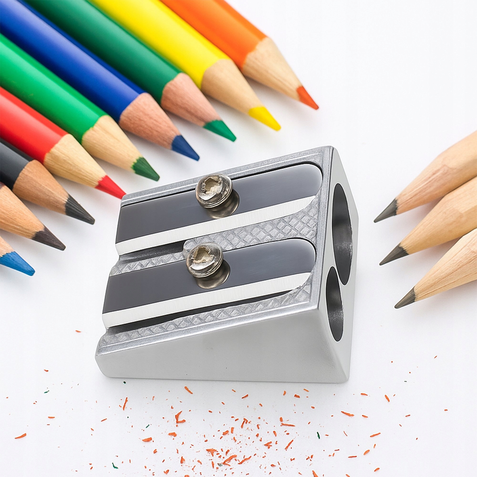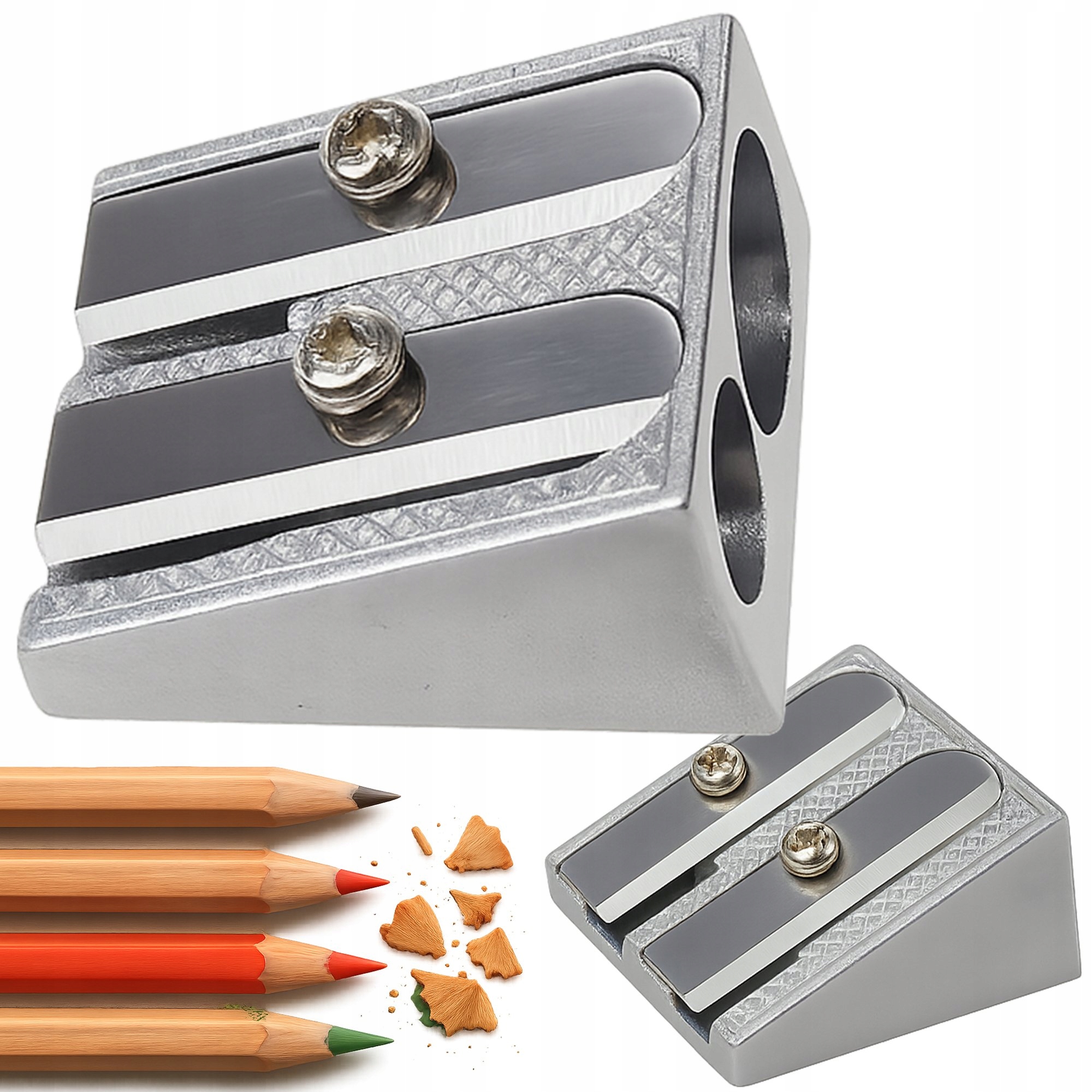 Это простой, но незаменимый прибор для студентов, художников и всех, кто ценит порядок и удобство. Двойная металлическая точилка будет держать ваши мелки и карандаши всегда готовыми к использованию - точно и без усилий.