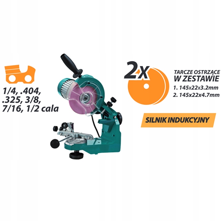 Асинхронный двигатель обеспечивает безотказную работу, долгий срок службы и высокое качество заточки. Точилка легкая и удобная, ее можно установить на любую столешницу. Она отличается множеством регулировок, благодаря которым мы можем затачивать цепи различных марок под свои нужды. точно и воспроизводимо. Затраты на точилку окупятся уже после нескольких заточок!