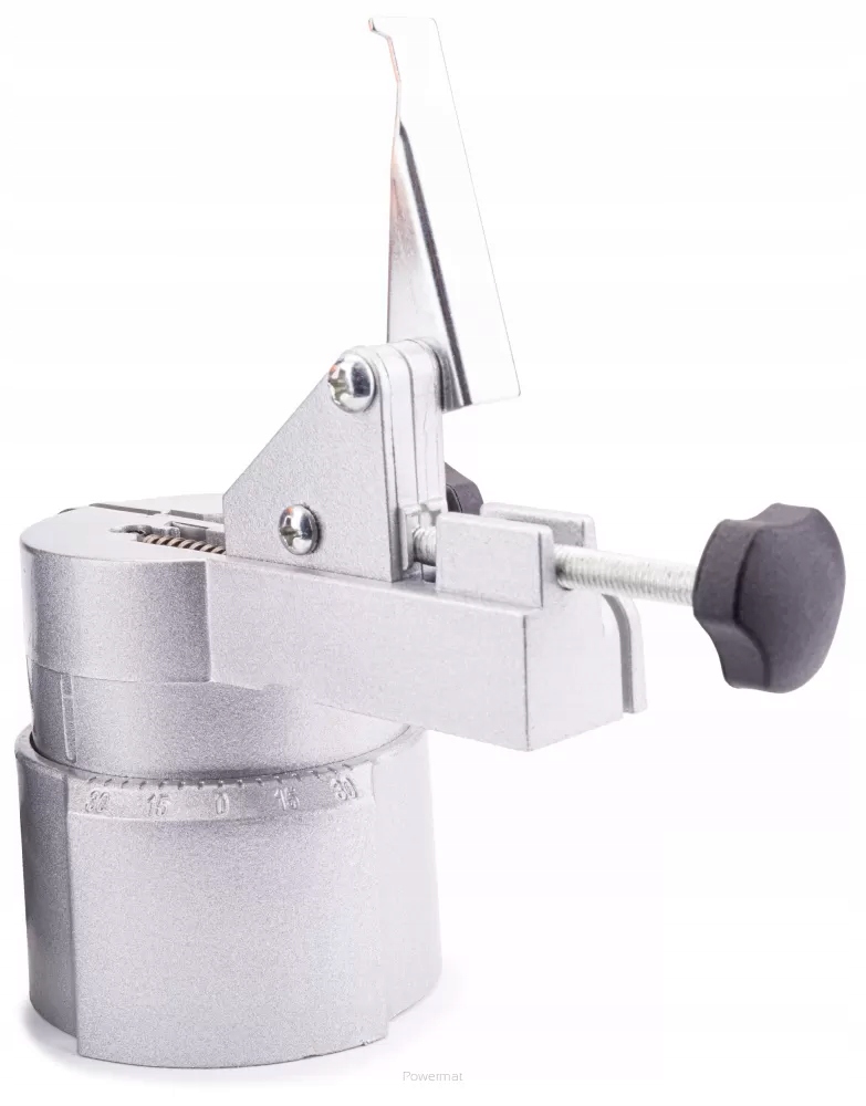 Точилка оснащена наклонными тисками с ограничителем глубины заточки.