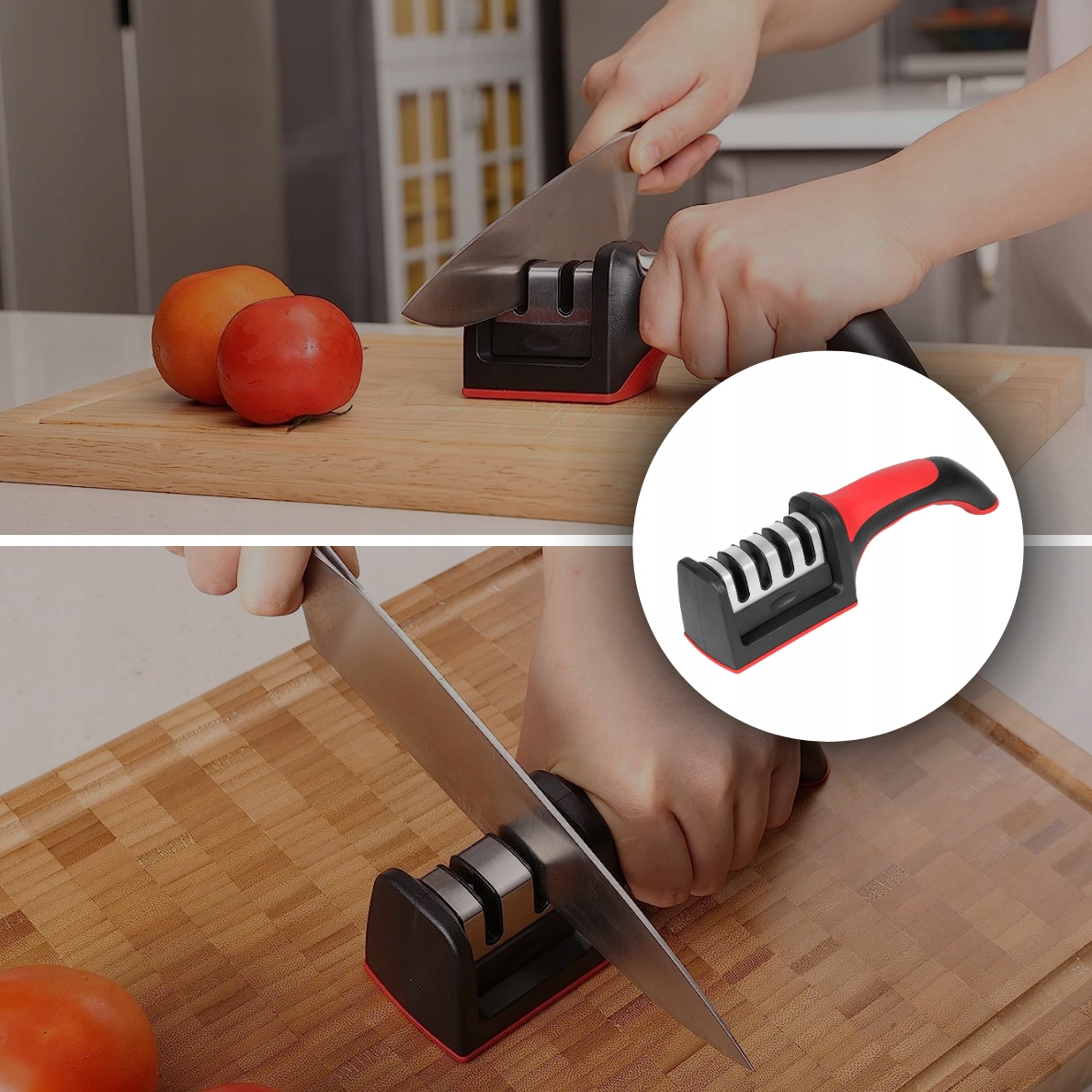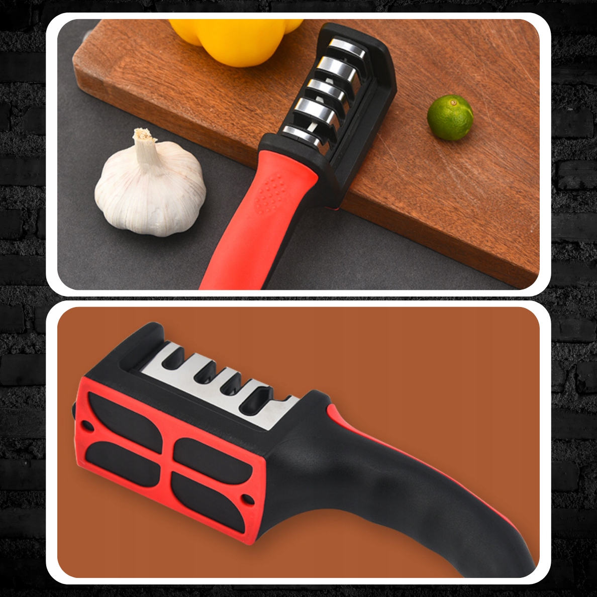 ✔️ Эргономичный дизайн✔️Наша трехфазная точилка для ножей была разработана с учетом удобства использования. Ее рукоятка имеет эргономичную форму, которая идеально ложится в руку, обеспечивая надежный и удобный захват во время заточки.
