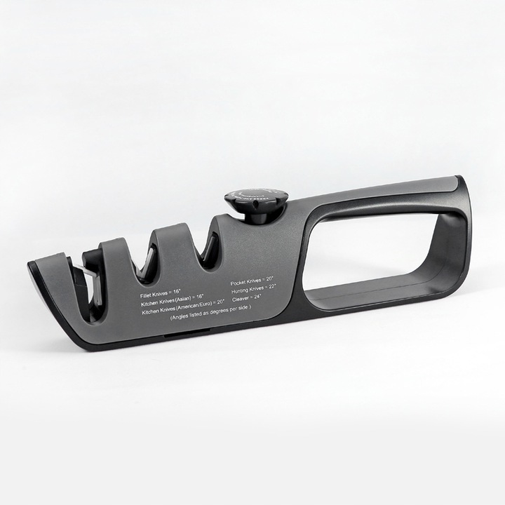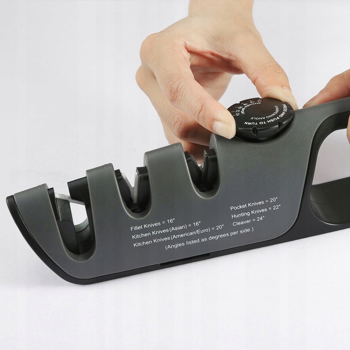 Регулируемая ручка позволяет затачивать в широком диапазоне углов от От 14 до 24 с каждой стороны. Специальный шлифовальный ролик для заточки ножей и ножей с одним лезвием.