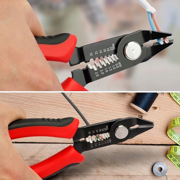 - Удаление изоляции из электрических кабелей во время установки сокетов, переключателей или ламп