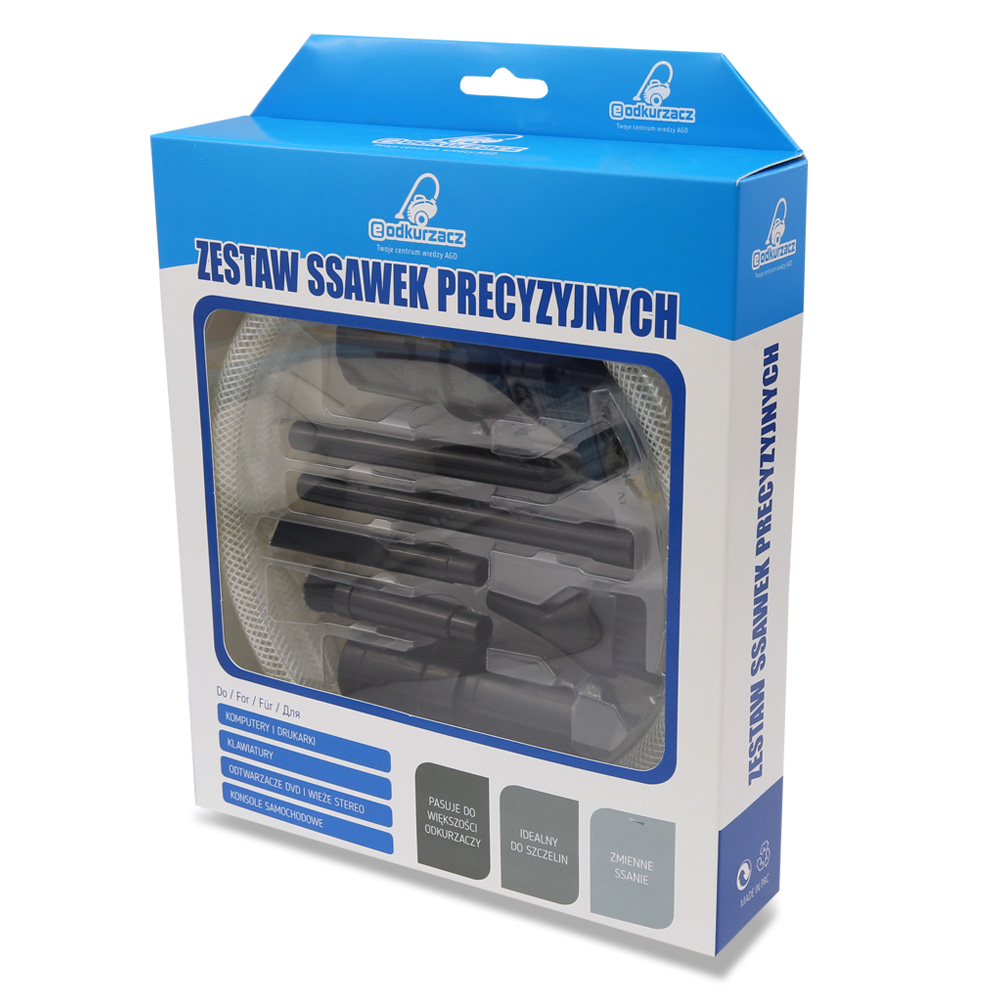 Набор прецизионных мини-присосок марки e-vacuum представляет собой превосходный продукт, который используется для очень деликатная техническая чистка пылесосом там, где это необходимо, точность и аккуратность. Набор был разработан для оказания помощи как в электронных услугах, так и в простом уходе за электронным оборудованием в домашних условиях, например, ноутбуками, компьютерами и принтерами. При подключении к пылесосу с функцией «мокрая уборка» наш набор можно использовать для разблокировки засорившихся посудомоечных, стиральных машин и подобной техники.