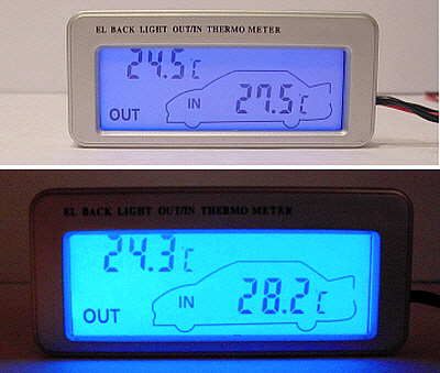 Термометр имеет большой, четкий ЖК-дисплей с синей подсветкой (питание от гнезда прикуривателя автомобиля) одновременно отображает температуру с двух датчиков.