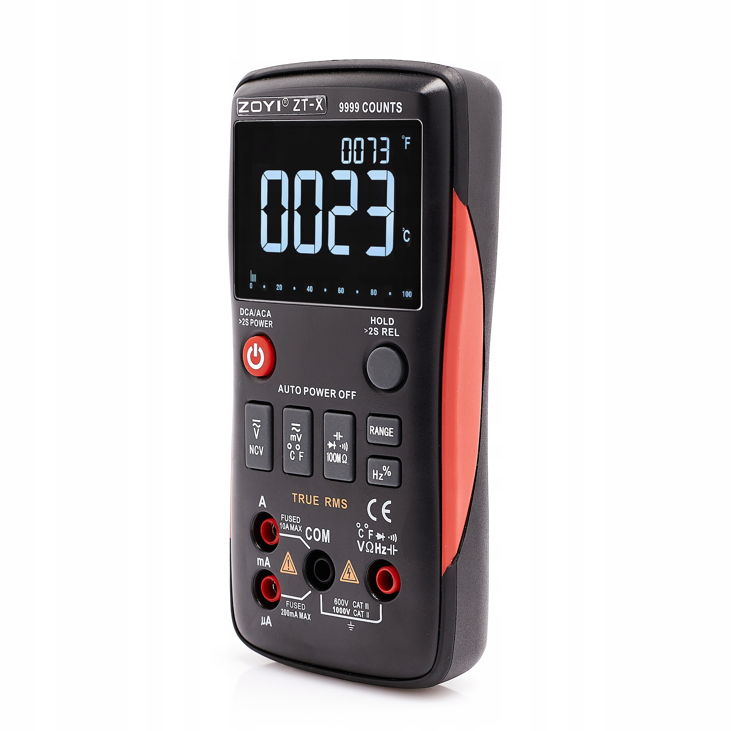 Батарея, цифровой мультиметр с функцией измерения фактического эффективного значения (RMS) и отображения до 9999 цифр. Устройство является суперкачественным, изготовленным из материалов с высоким классом, оно является неотъемлемой частью любого обслуживания, автомобильной мастерской, а также счетчика, полезного в каждом доме. Мультиметр оснащен автоматическим определением диапазона, который облегчает и ускоряет тесты.
