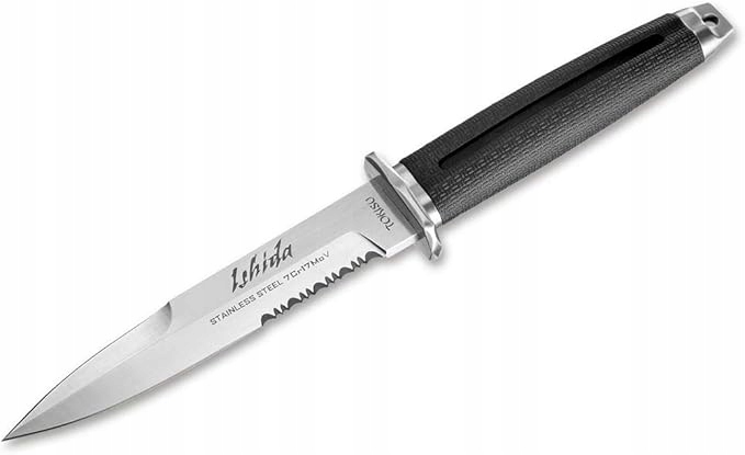 tokisu Ishida - Ishida от Tokisu - это тактический нож с симметричным, однопользованным лезвием с частично зазубренным лезвием. Ручка с тонкой текстурой прорезится для лучшего сцепления, а также имеет наклоны на поводке.