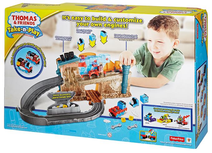 Просто загрузите три детали локомотива в три отверстия на крыше завода и поместите шасси на платформу.