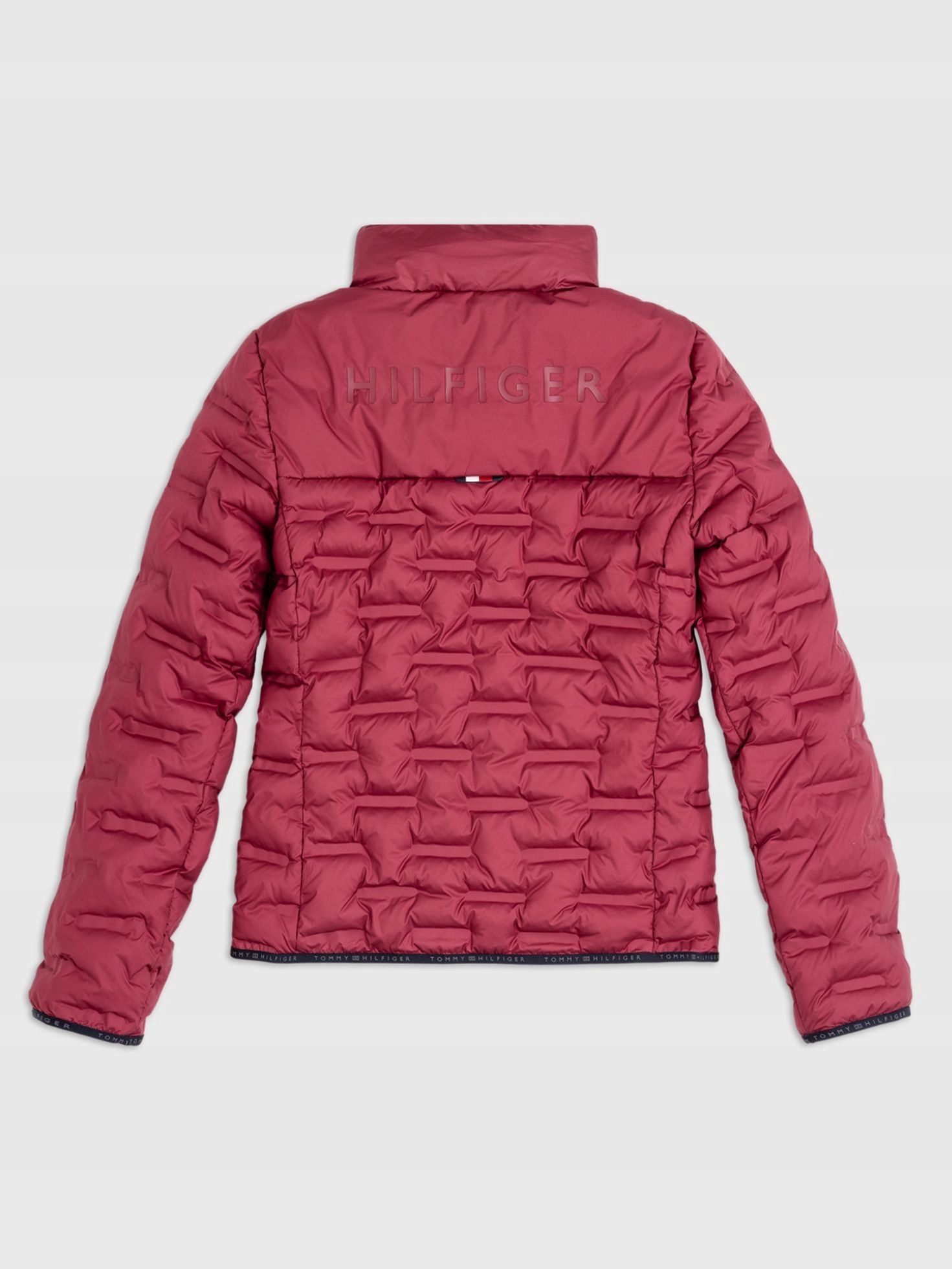 Зимний пуховик с бесшовной технической стежкой, наполнителем из эко-волокна и логотипом Tommy Hilfiger по всей поверхности.