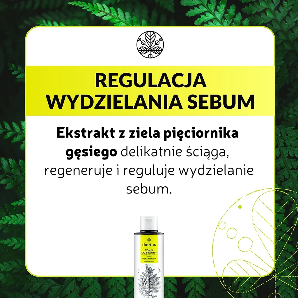 Тоник для лица DUETUS – отличный выбор для людей с комбинированной, жирной, акне, загрязненной и чувствительной кожей. Помогает восстановить правильный уровень pH после очищения и сохранить естественный баланс кожи. Дополнительно тоник подготавливает кожу к последующим этапам ухода, улучшая усвоение активных ингредиентов, содержащихся в последующих продуктах.