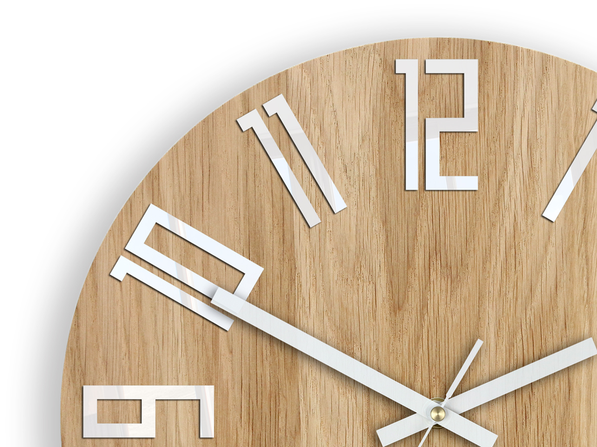 Слое циферблата выполнено из 100% дуба, поэтому не бывает двух одинаковых часов.