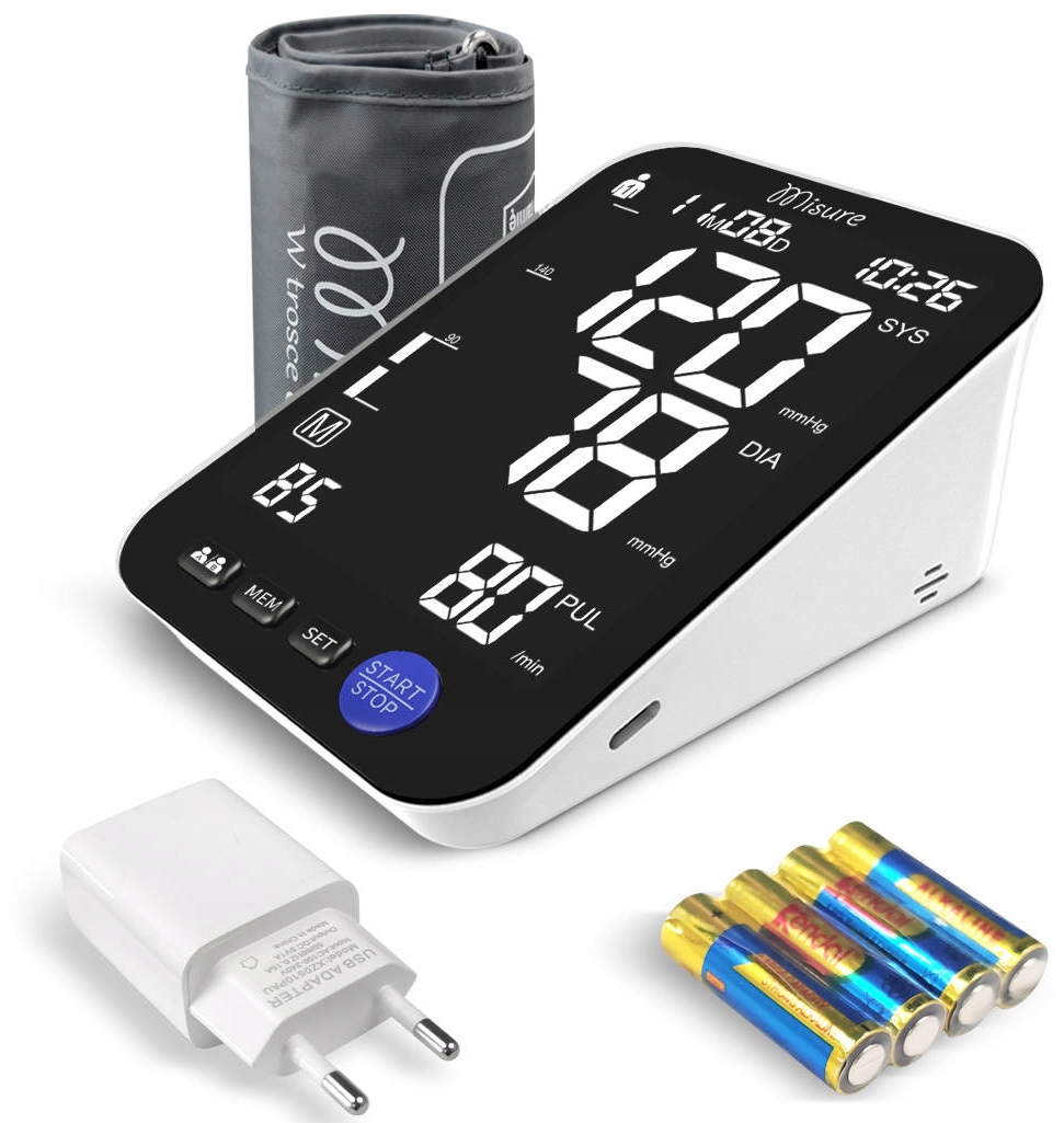 МОНИТОР АРТЕРИАЛЬНОГО ДАВЛЕНИЯ - АРИТМИЯ, ГОВОРИТ НА ПОЛЬСКОМ ЯЗЫКЕ + БЛОК ПИТАНИЯ USB-C