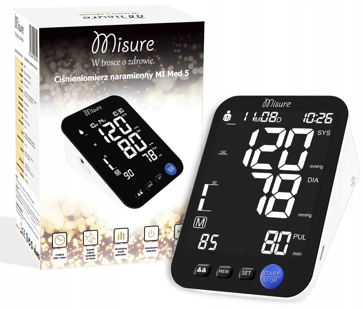 Тонометр Misure MI Med 5 обеспечивает высочайшую клиническую точность показаний измерения артериального давления, поскольку является медицинским прибором, используемым в учреждениях здравоохранения.