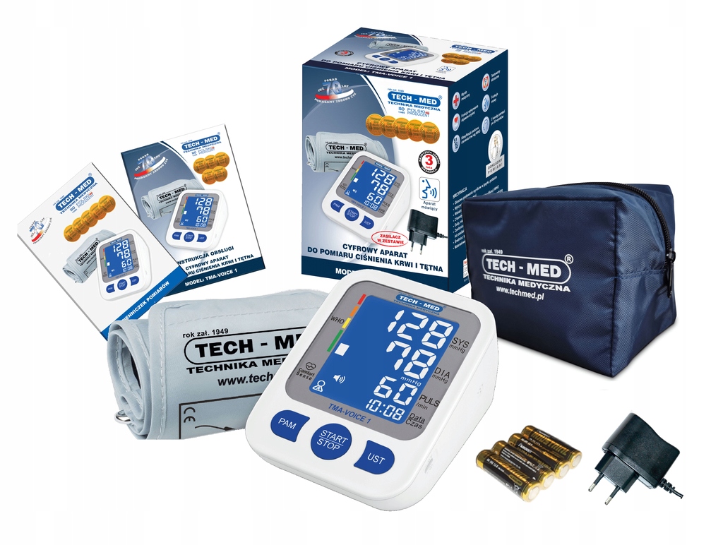 МОНИТОР АРТЕРИАЛЬНОГО ДАВЛЕНИЯ TECH-MED ГОВОРИТ НА ПОЛЬСКОМ ЯЗЫКЕ + БЛОК ПИТАНИЯ