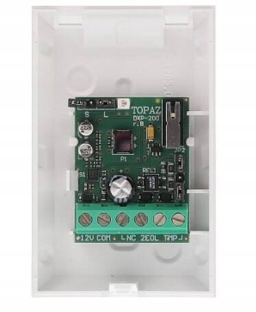 ТОПАЗ оснащен платой электроники со встроенными параметрическими резисторами 2,2 кОм, оптимизированными для ПКП SATEL. Благодаря им возможна простая и быстрая установка извещателя при сохранении очень хорошей связи. Детектор может эффективно работать с панелями управления других производителей, но тогда необходимо использовать другие резисторы.