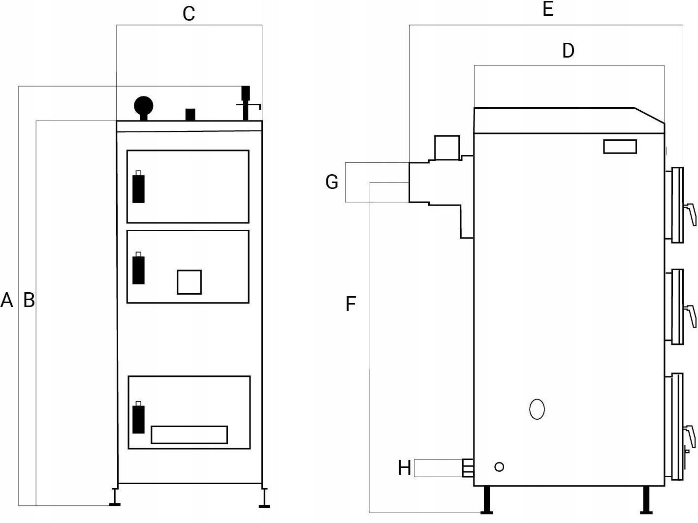 - Простота эксплуатации -легкодоступные все узлы котла, вместительный зольник, легко очищаемый теплообменник, ножки для выравнивания котла