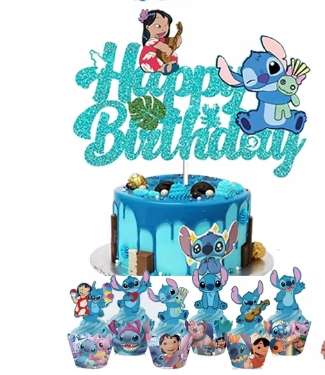 ТОПЕР ДЛЯ ТОРТА Лило и Стич Стич + 24 топпера для кексов на день рождения