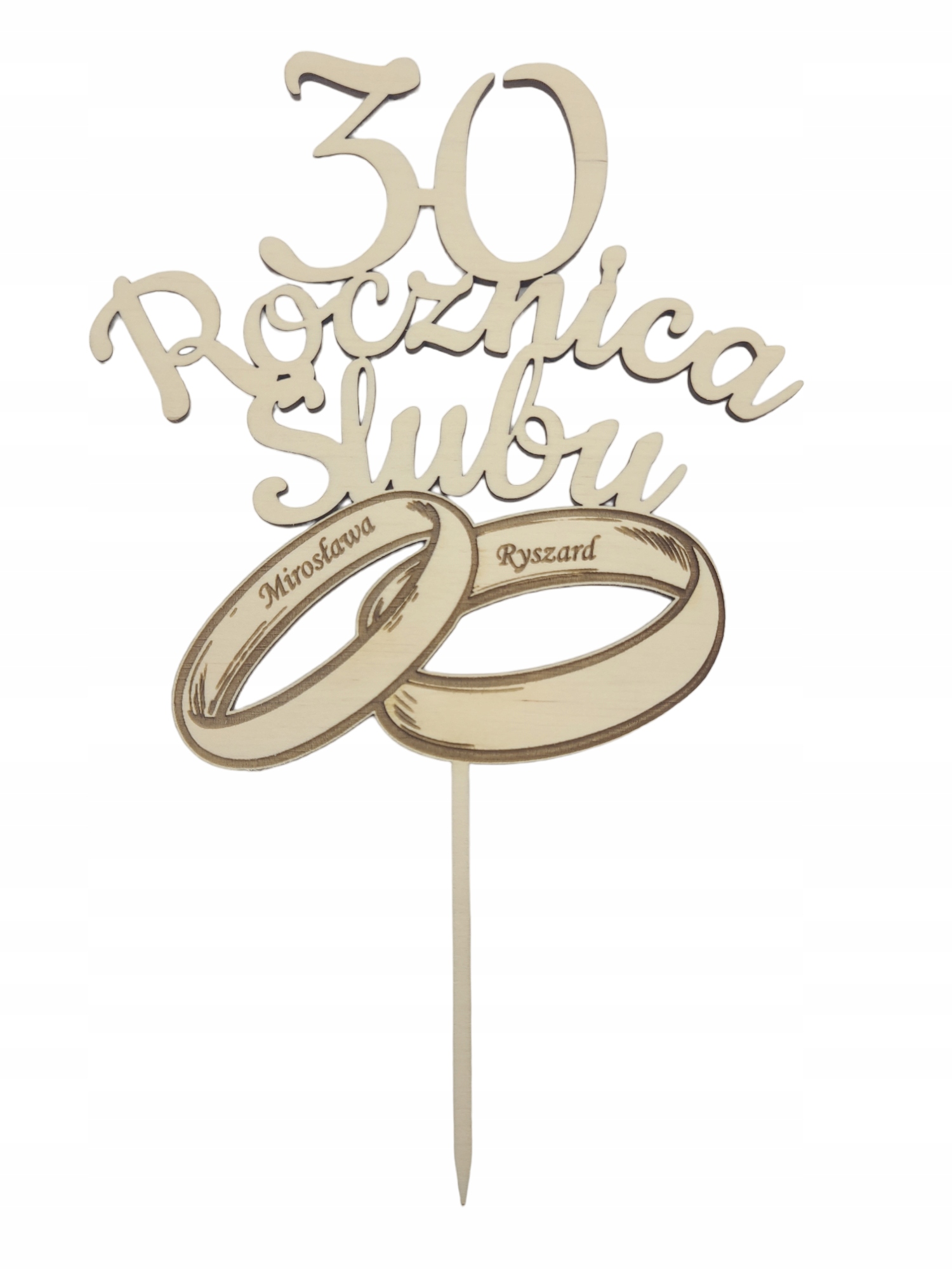 Топпер на годовщину свадьбы с именами, выгравированными на обручальных кольцах, — идеальный способ отпраздновать свою любовь уникальным способом. Топпер изготовлен из фанеры, что придает ему элегантный и естественный вид. В украшение входят аккуратно вырезанные, нежные и стильные обручальные кольца, на внутренней стороне которых выгравированы имена «жениха и невесты».