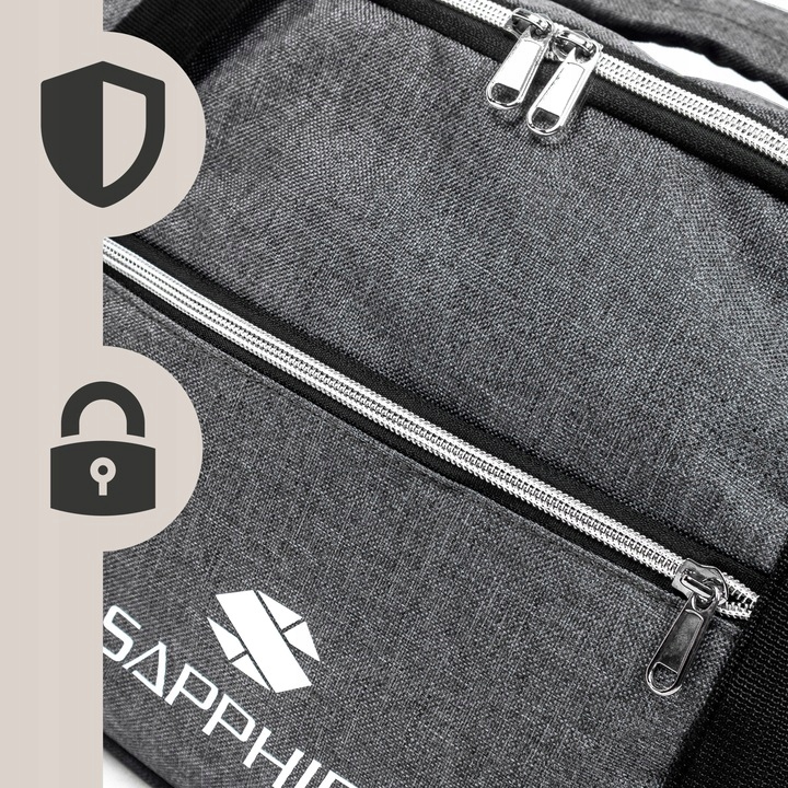 Благодаря множеству практичных решений, таких как плечевой ремень с металлическими карабинами, ремень для крепления на ручке чемодана, четыре ножки снизу, просторные боковые карманы и два закрытых отделения, сумка Sapphire ST-130 облегчает работу. организовать и перевезти ваши вещи.