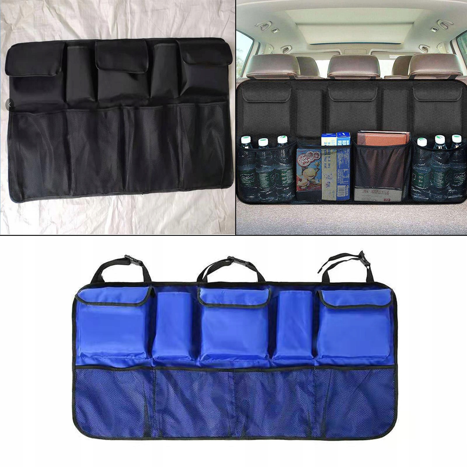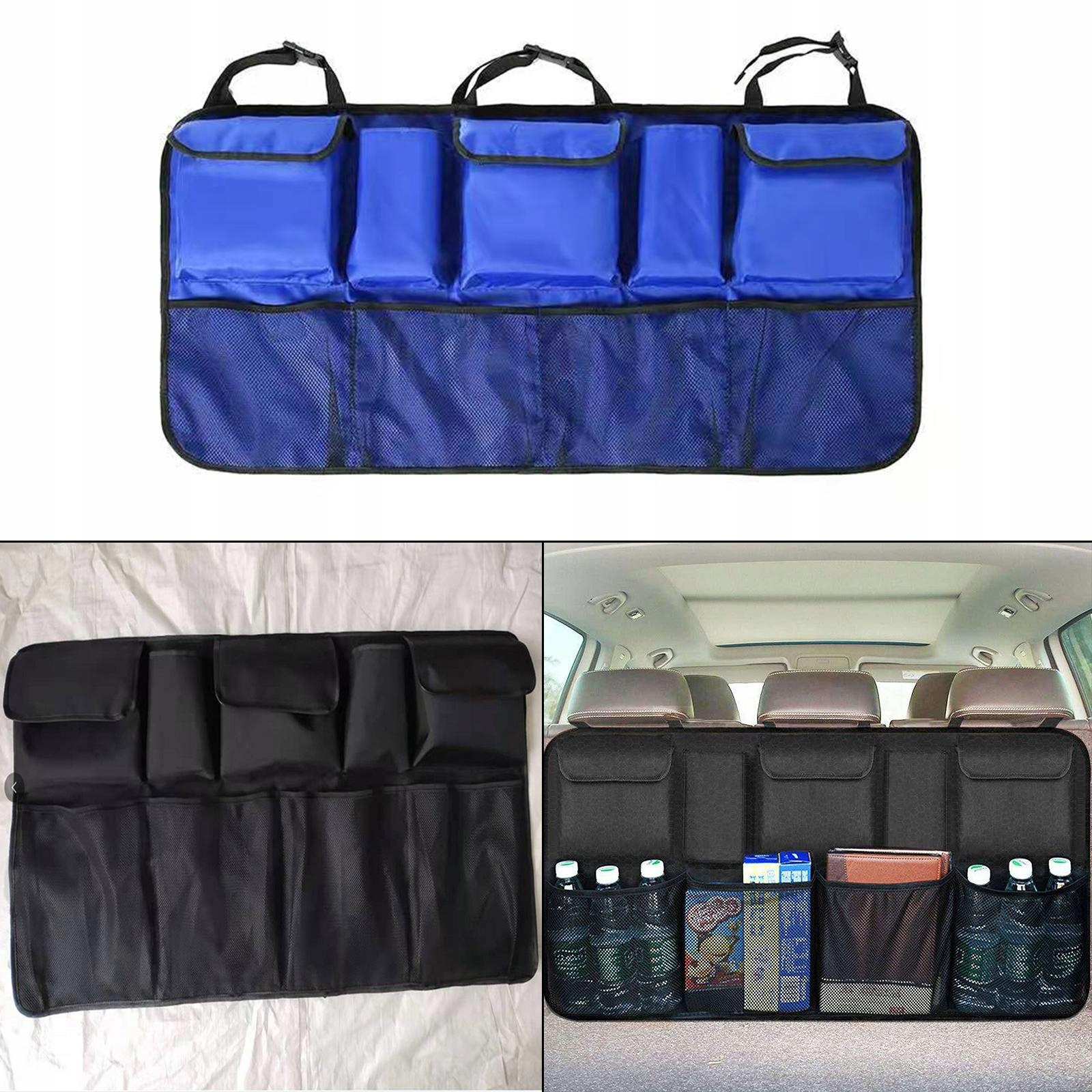 Torba na tylne siedzenie samochodu z wieloma rozciągliwymi siatkami w kształcie koperty, niebieska