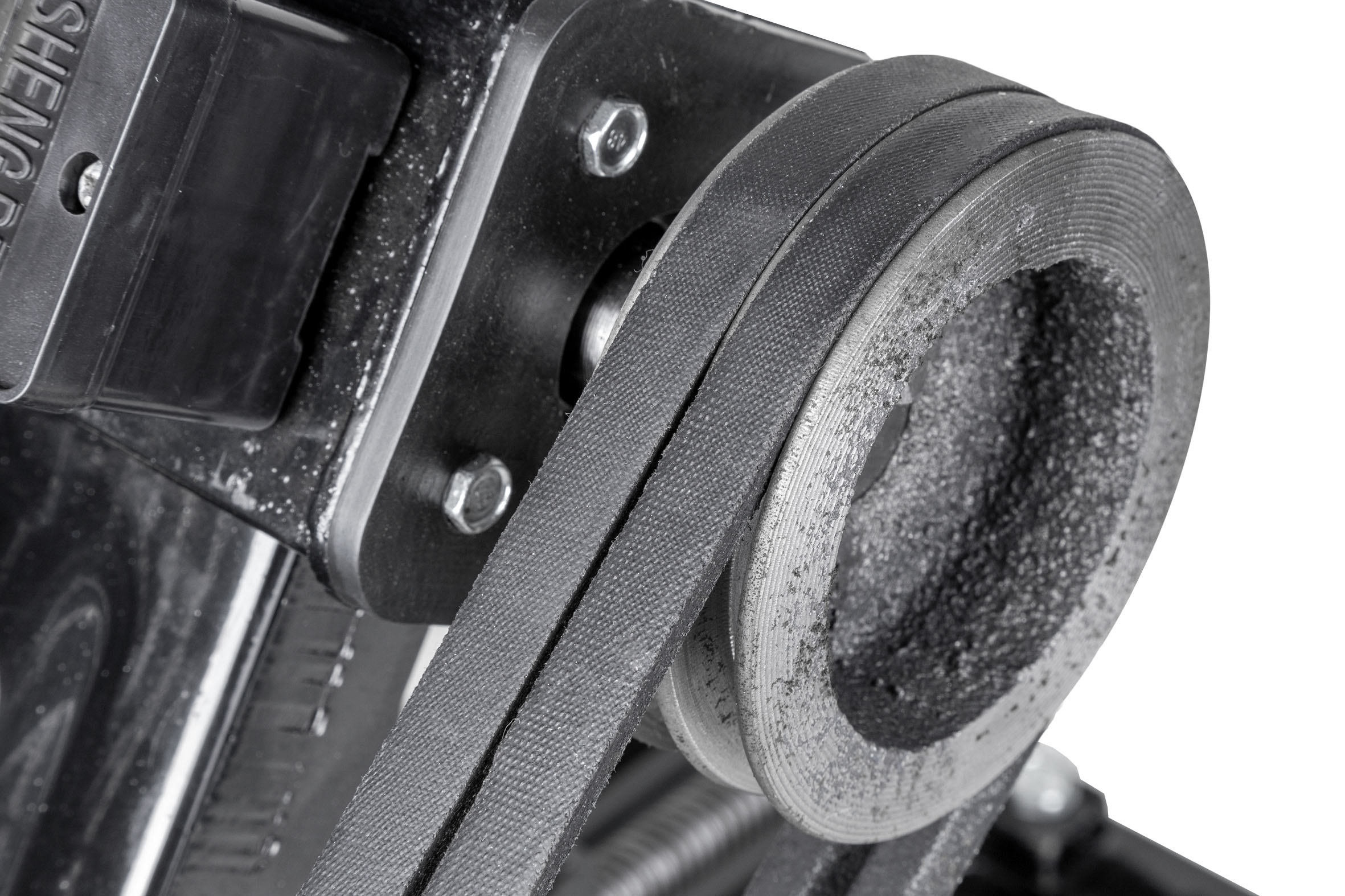 Сердцем резака является чрезвычайно эффективный двигатель с максимальной мощностью 2200 Вт. Двигатель передает свою мощность через 2 клиновых ремня непосредственно на шпиндель и установленный на нем диск, что делает устройство мощным и точным. Дополнительным преимуществом такой конструкции является очень тихая работа и простота обслуживания устройства в случае износа клиновых ремней.