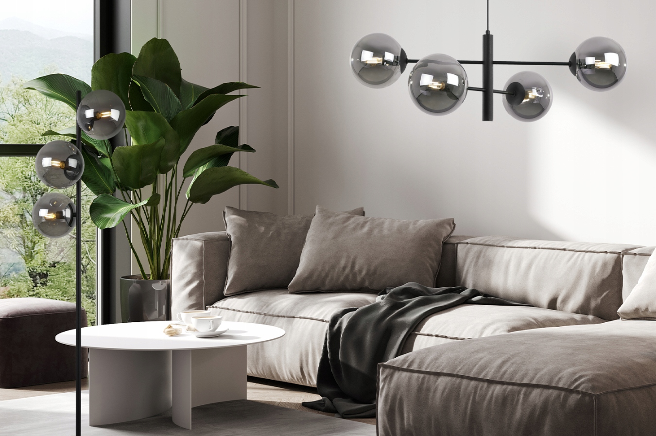 ТОРГОВИЙ СВІТИЛЬНИК ГРАФІТОВІ СКЛЯНІ КУЛІ ЧОРНИЙ ХРОМ GLAMOUR LOFT