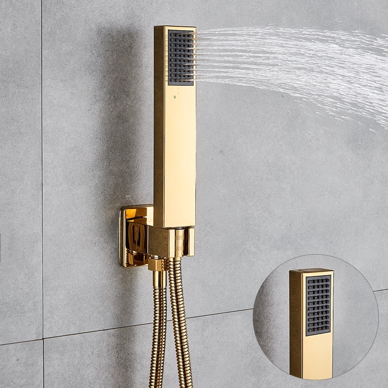 Аккумулятор завершен в нескольких золотых глянце, защищая от царапин. Он изготовлен из очень прочной латуни - у него есть кран и насадка для душа.