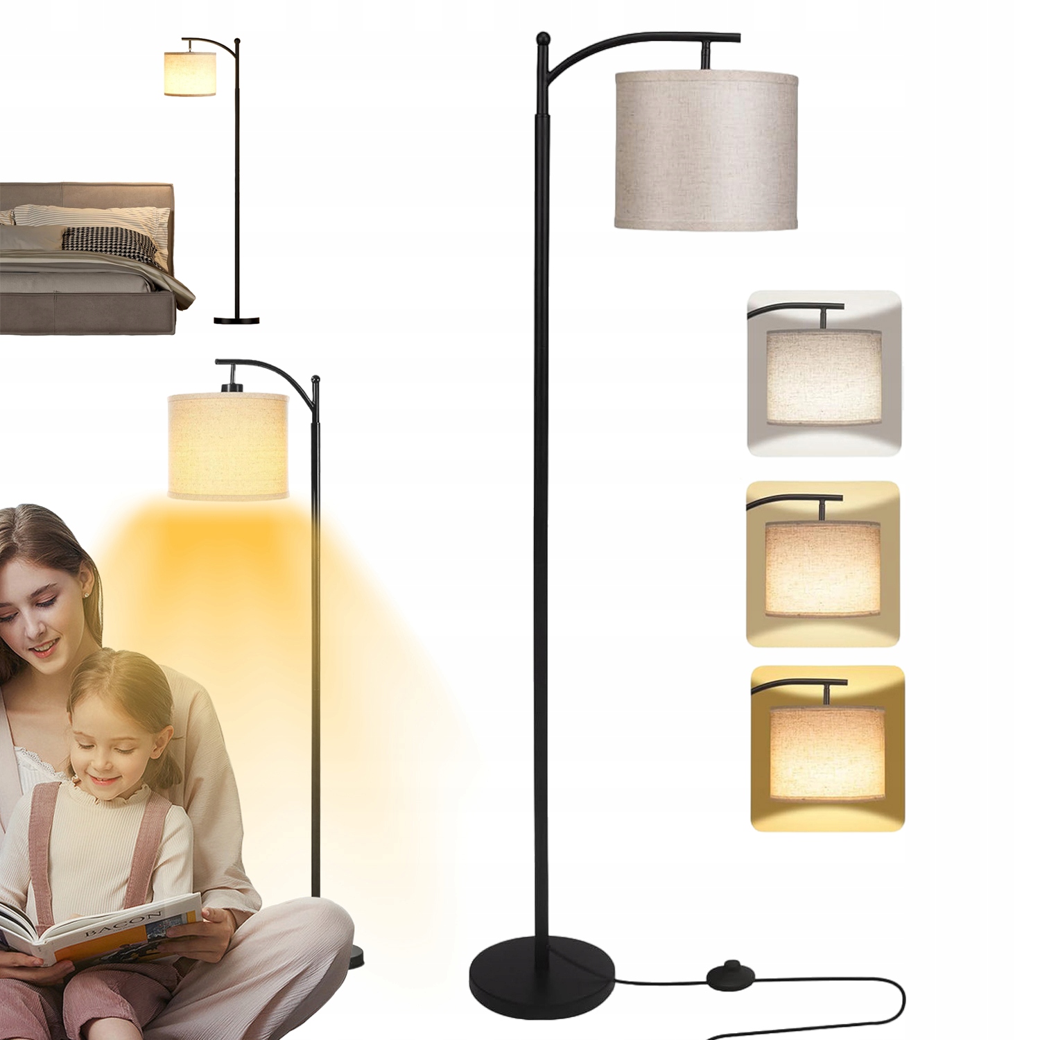 💡3 цветовые температуры: Оснащен светодиодной лампой мощностью 9 Вт, что делает торшер в гостиной более современным, и можно установить 3 цветовые температуры: теплый белый свет 3000K подходит для сна в спальне или кормления ребенка / холодный белый 5000K Свет подходит для учебы, работы в офисе или учебы/естественный белый свет 4000K подходит для просмотра телевизора или игр. Различные цветовые режимы создают разную атмосферу для удовлетворения ваших ежедневных потребностей.