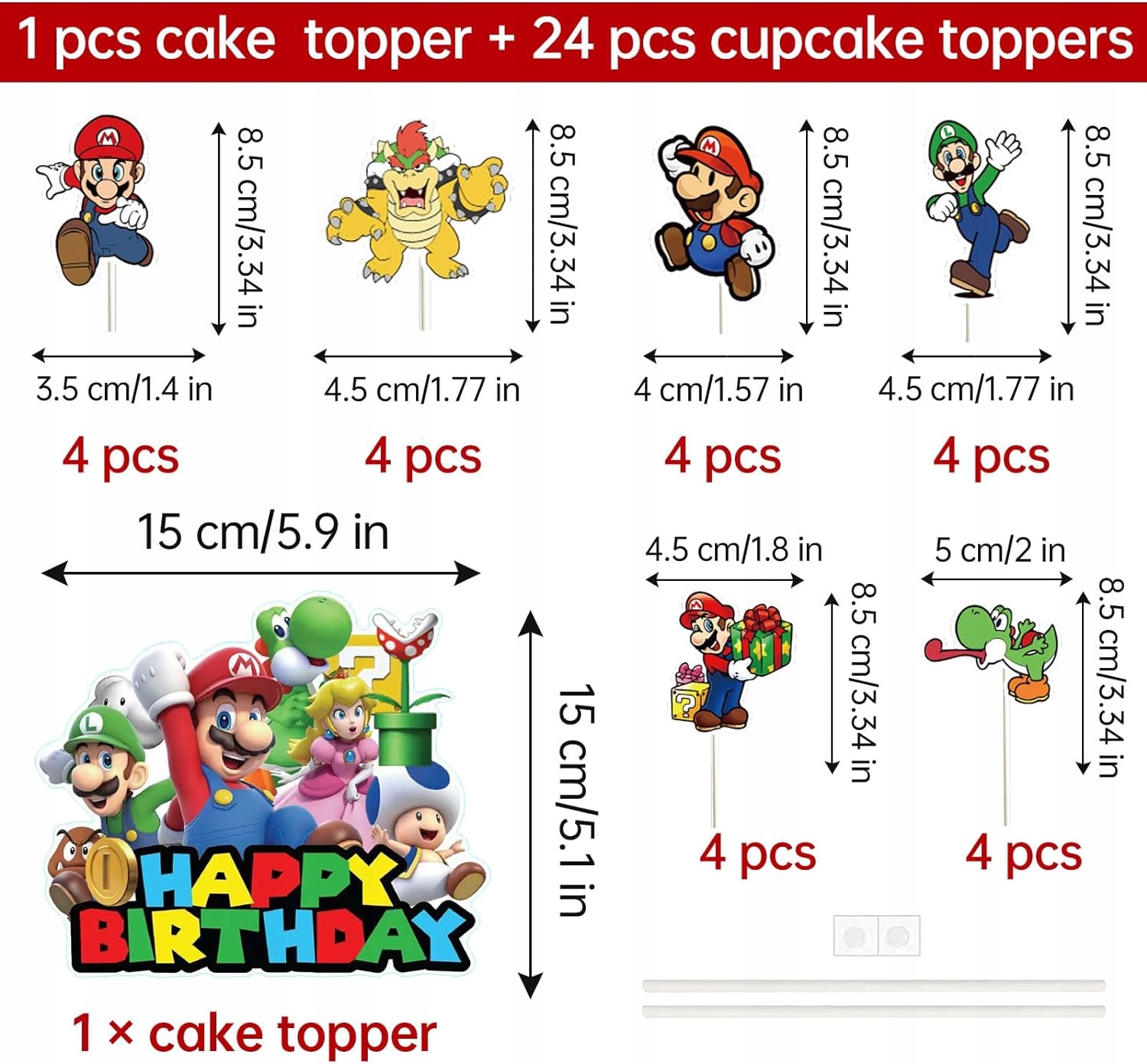 ТОППЕРЫ ДЛЯ ТОРТА ЧАШКИ SUPER MARIO DECORATION 25 ШТ.