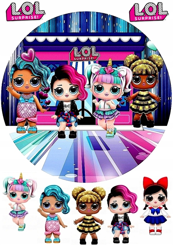 Толстая съедобная круглая вафля для вафельного торта с мотивом Лол Сюрприз.