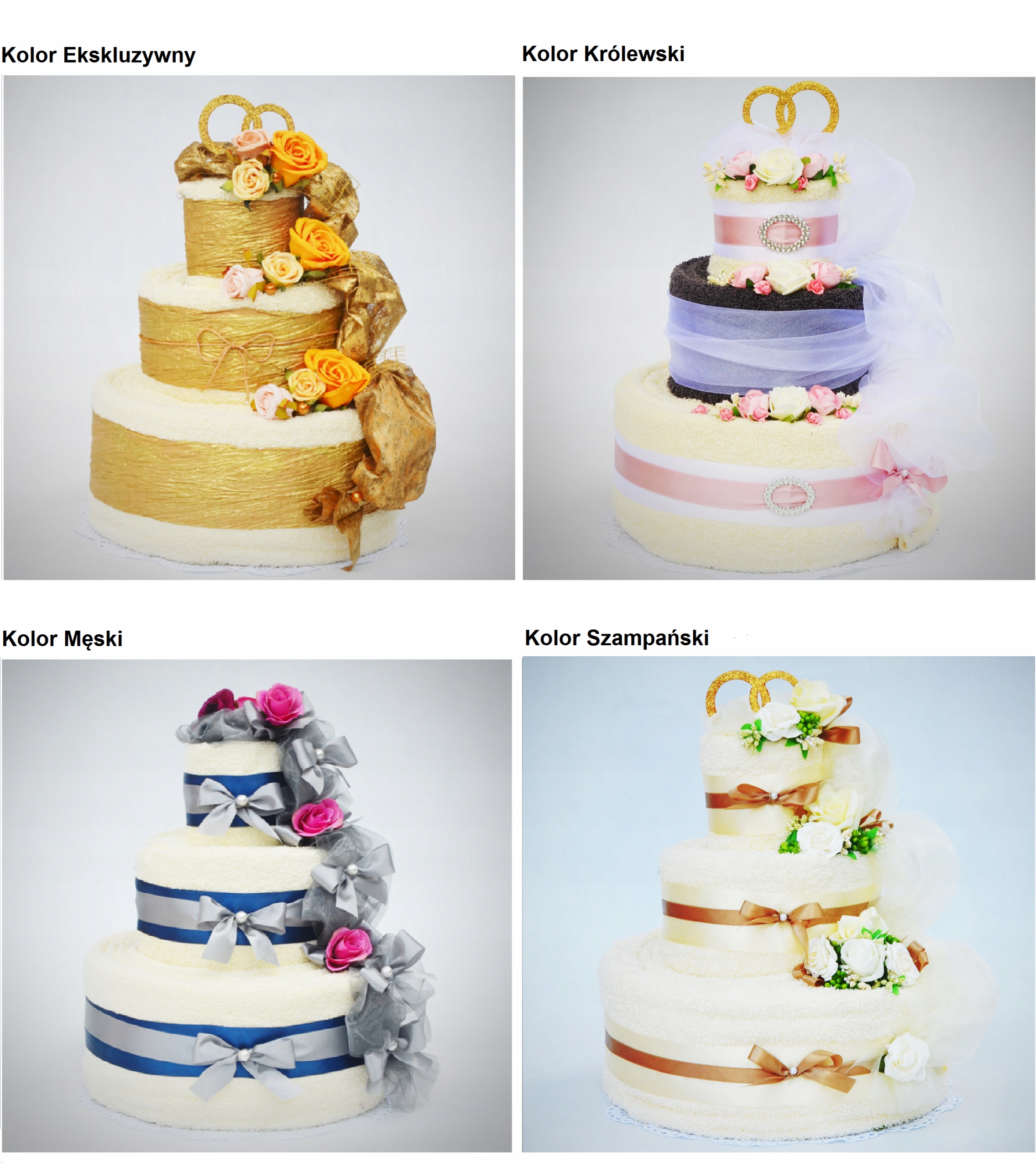 Каждый торт мы можем оформить в любом цвете полотенец - цветовая палитра доступна ниже и добавить любое дополнение к верху торта.