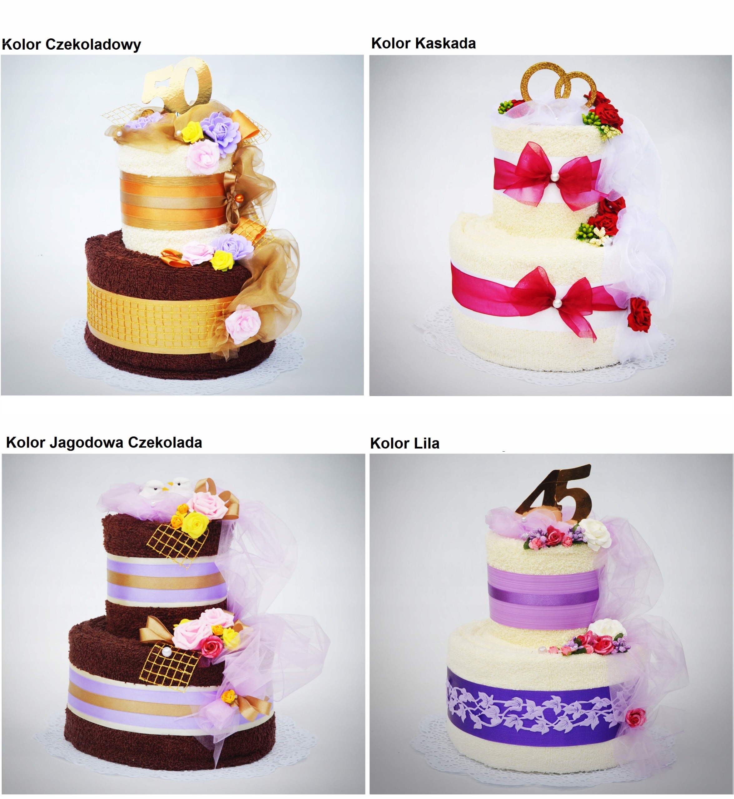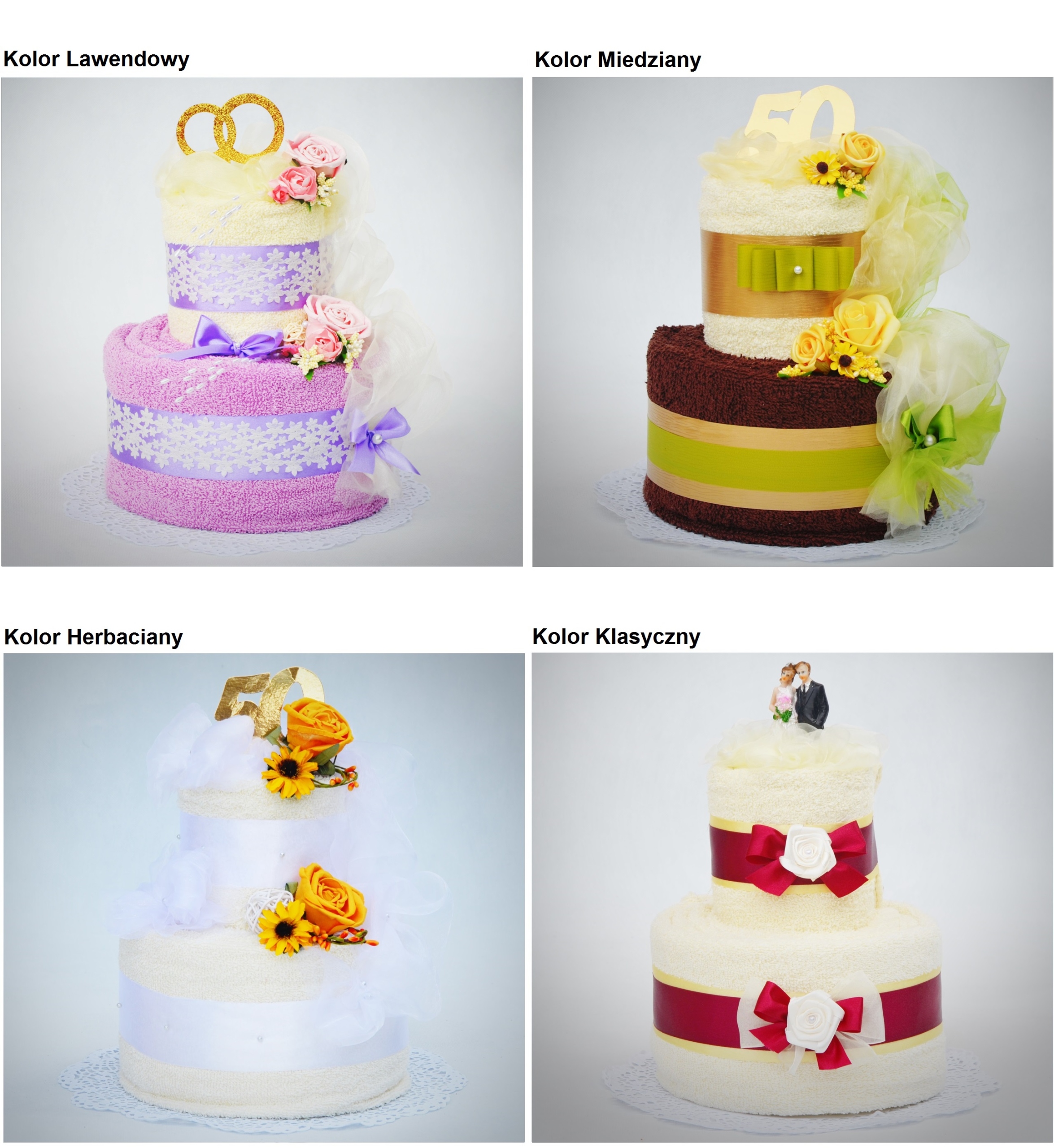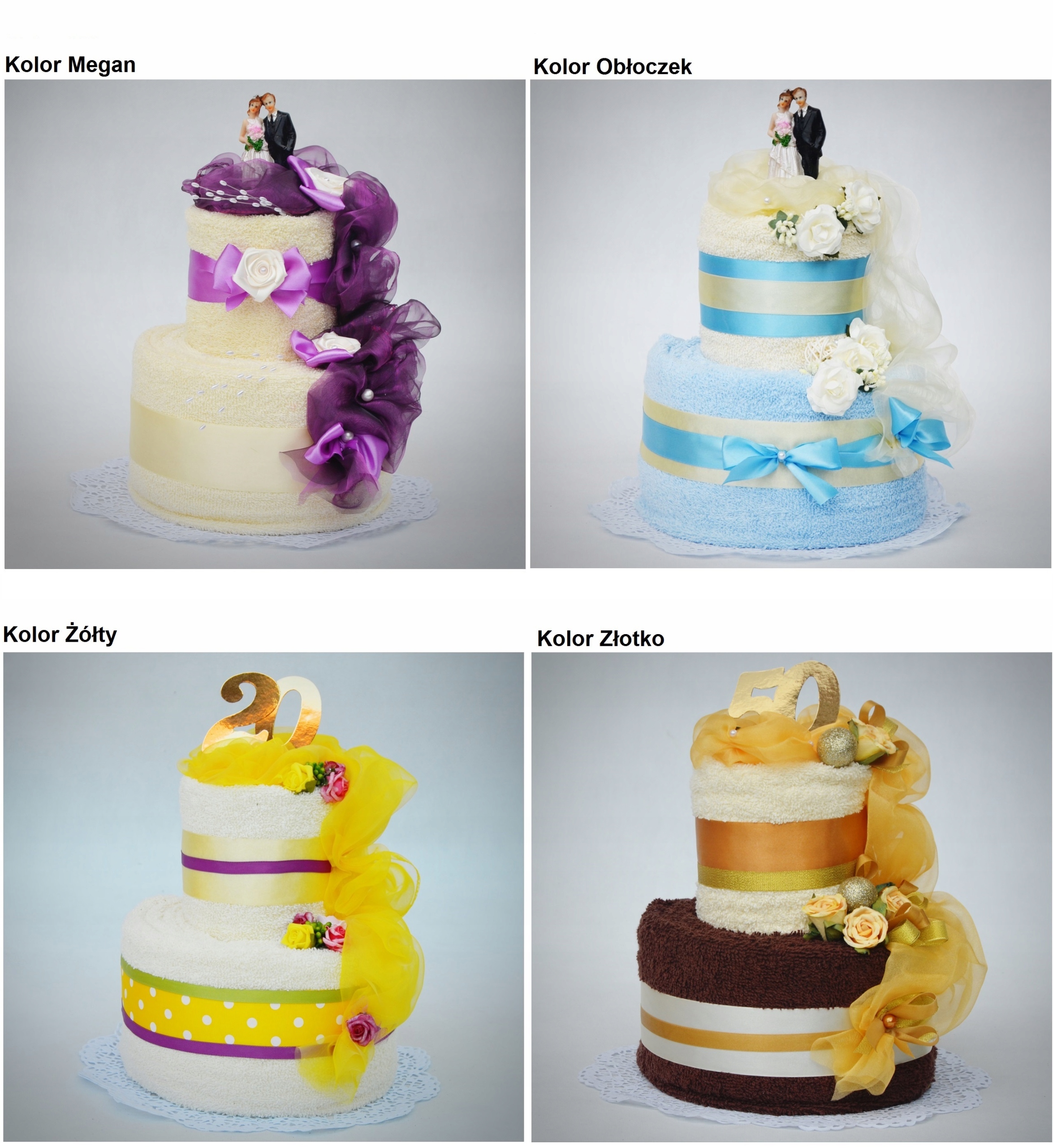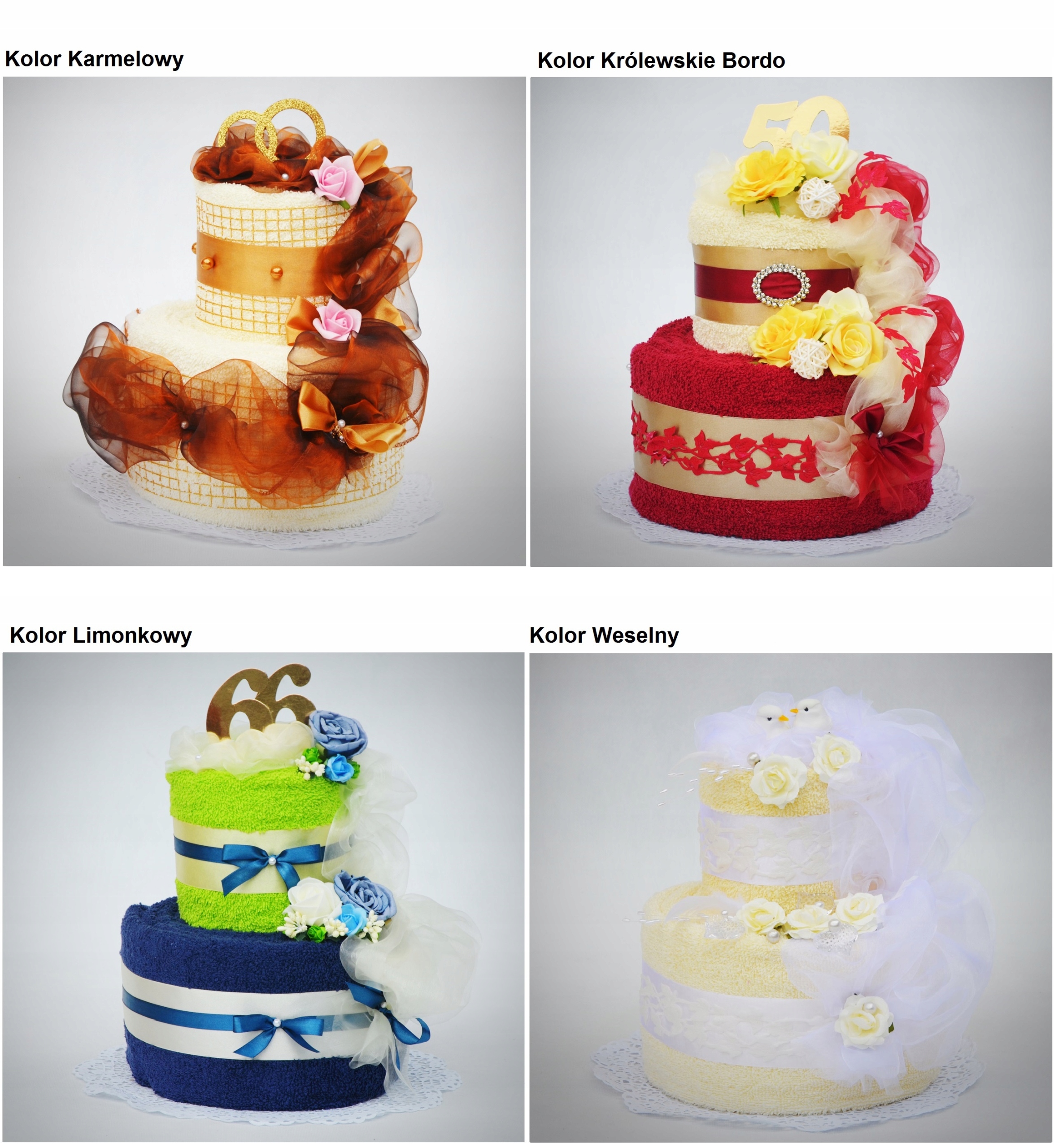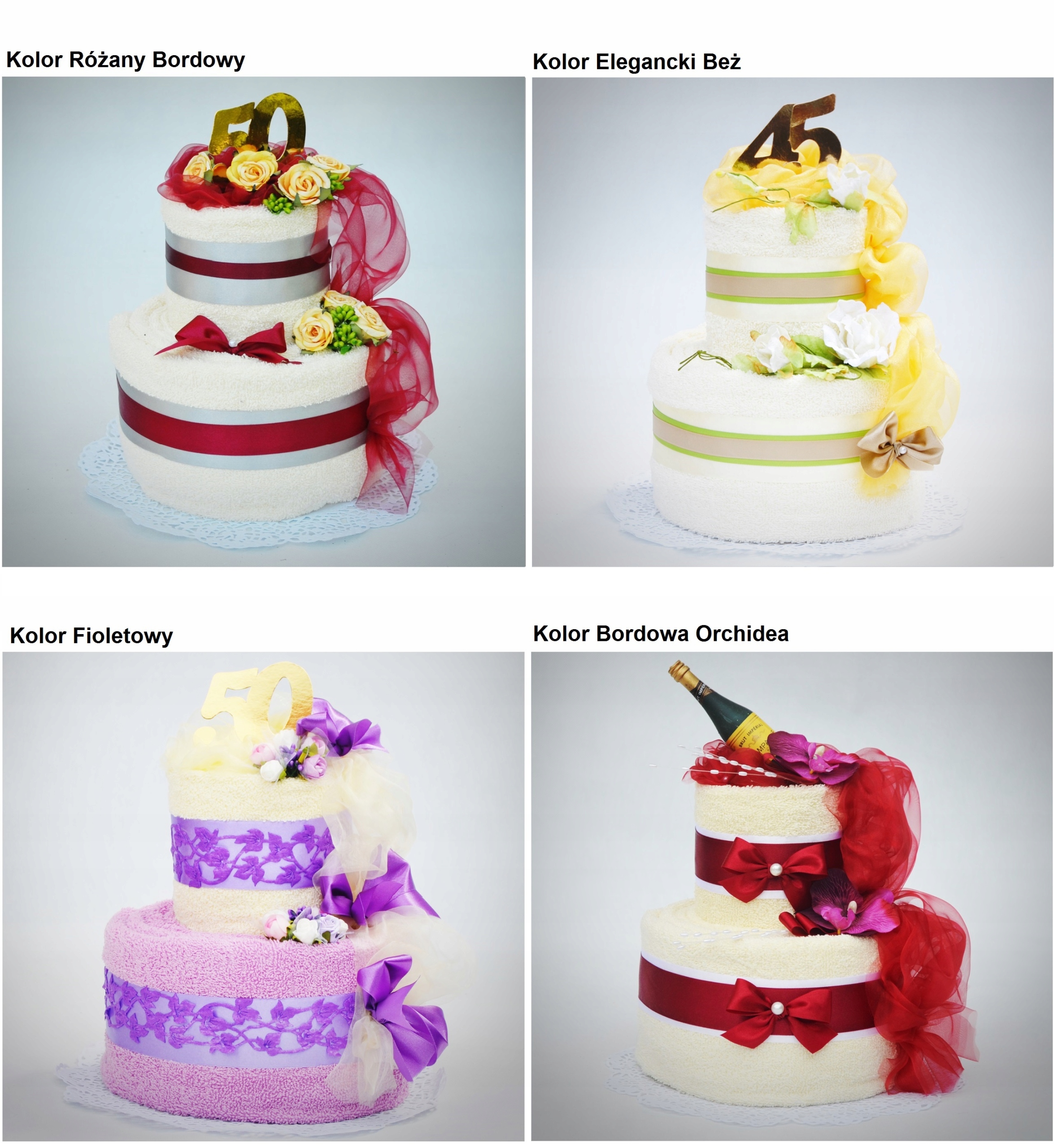 Каждый торт мы можем изготовить в любом цвете полотенец - цветовая палитра представлена ниже. На верх торта мы можем добавить любую добавку.
