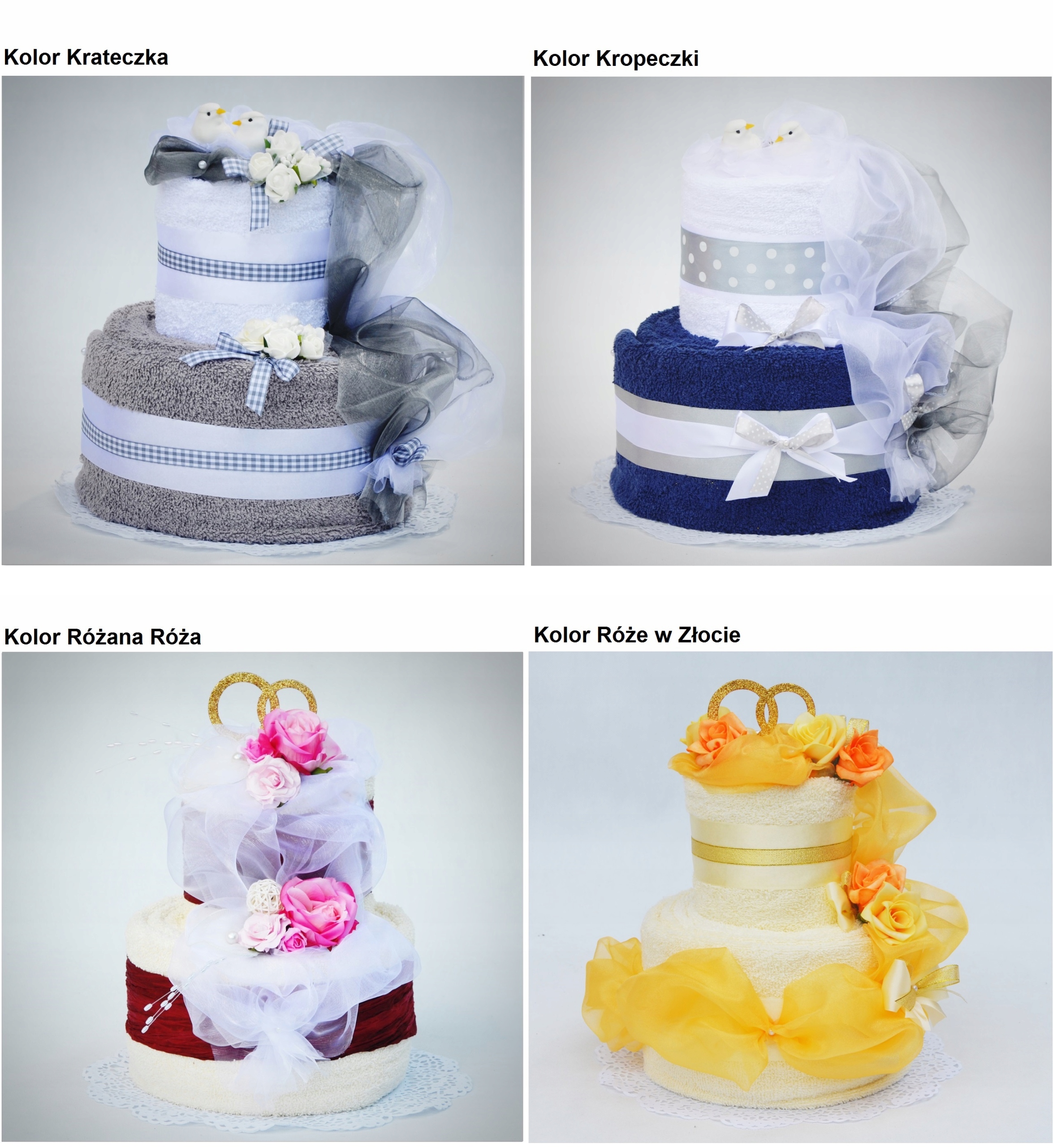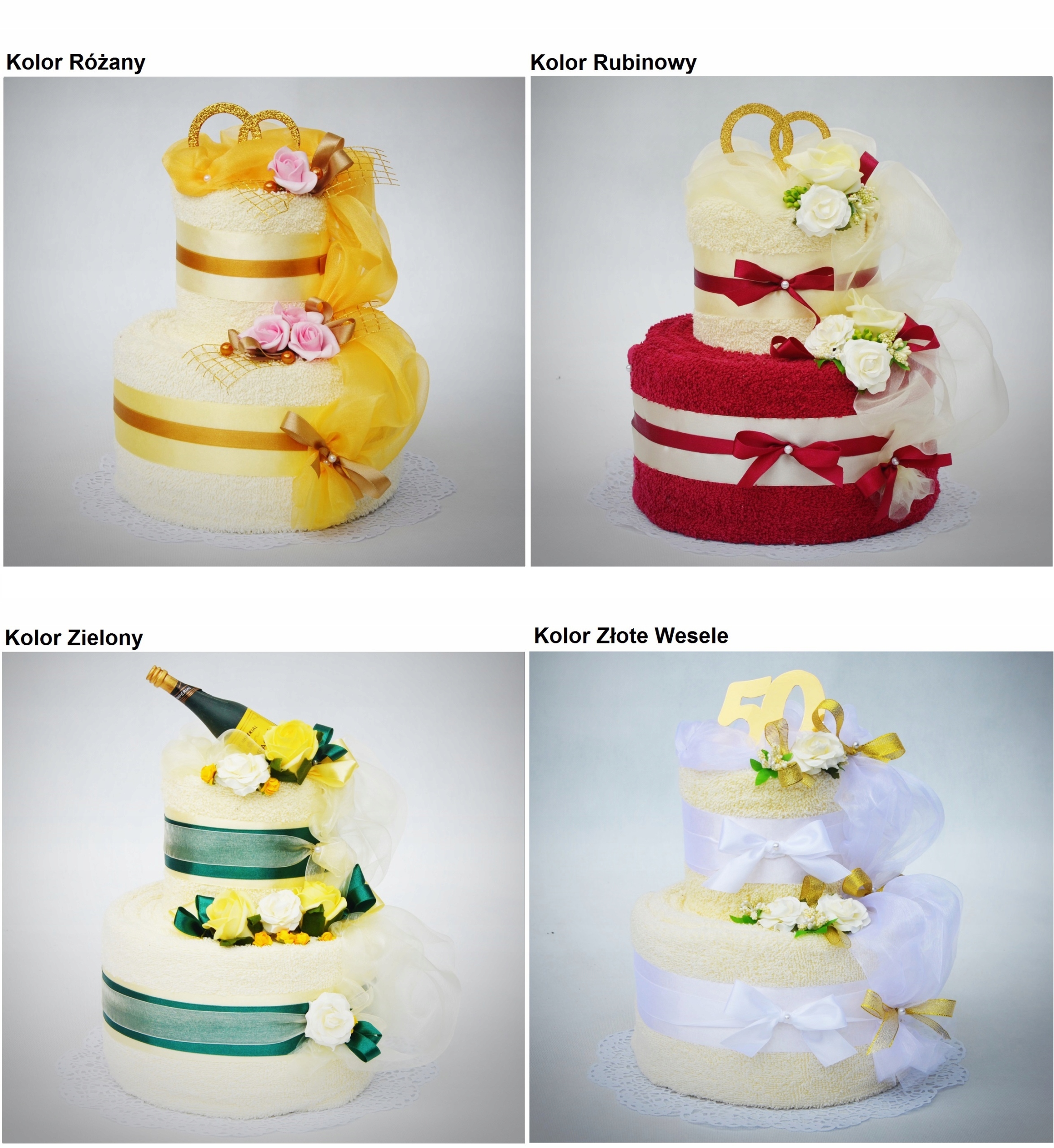 Каждый торт мы можем изготовить в любом цвете полотенец - цветовая палитра доступна ниже. На верх торта мы можем добавить любую добавку.