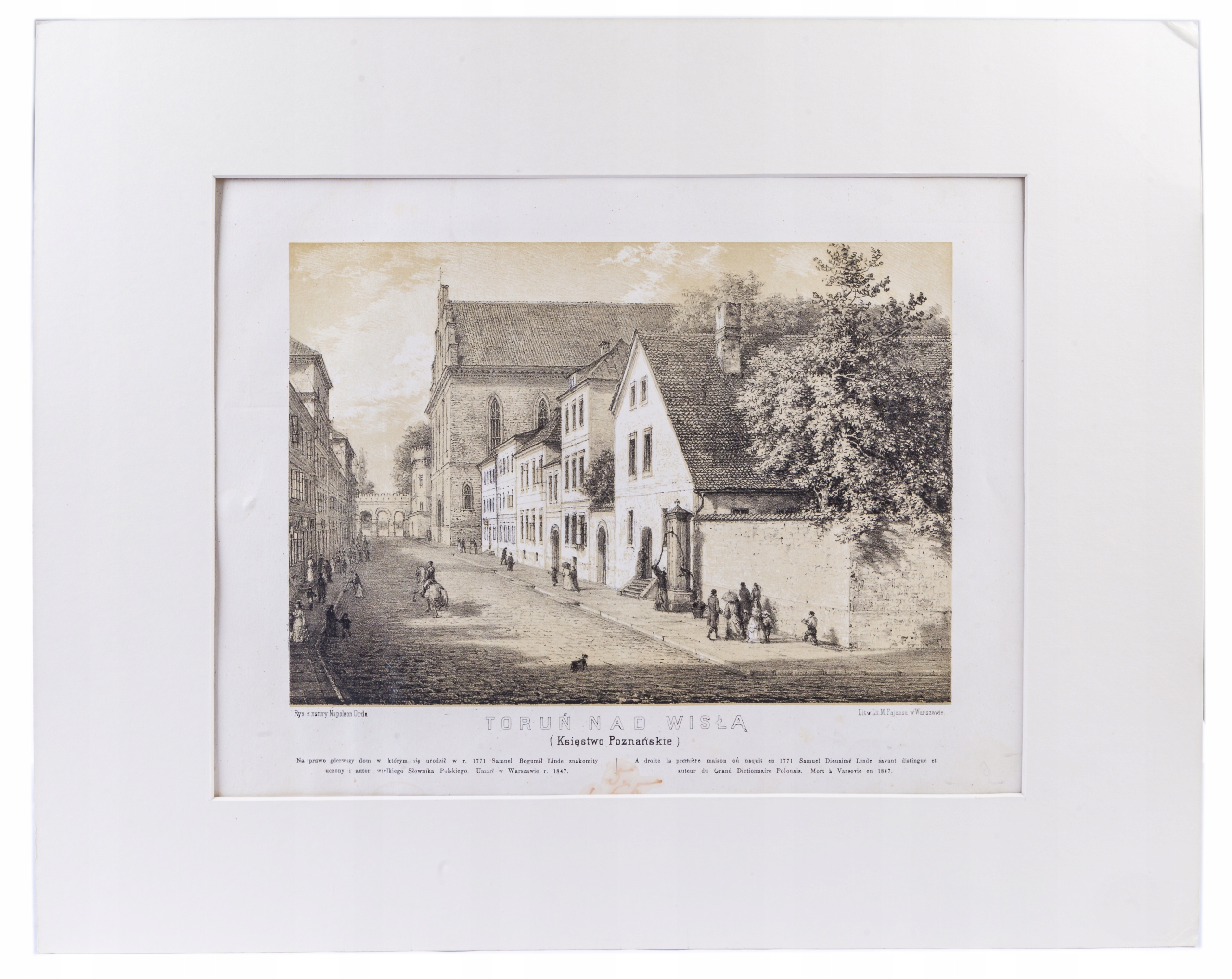 TORUŃ NAD WISŁĄ LITOGRAFIA Napoleon Orda ok. 1886r. ORYGINAŁ XIX w. Sepia