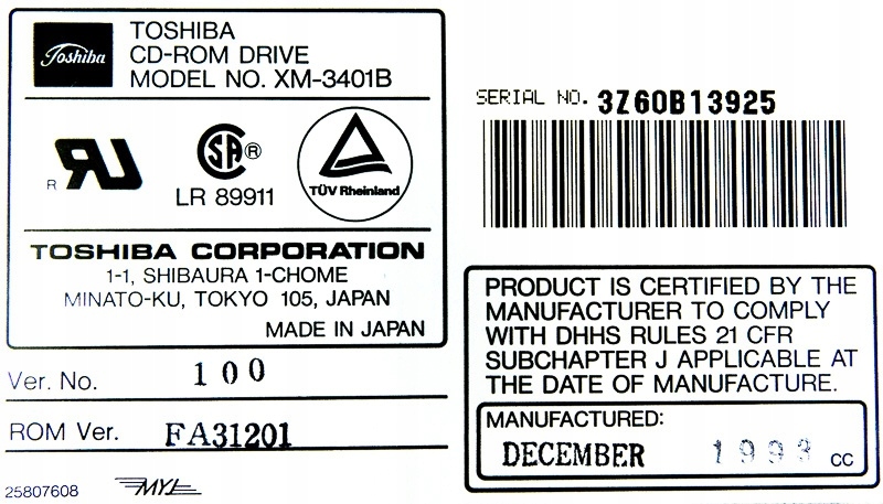 TOSHIBA XM-3401B CD-ROM DRIVE 2x SCSI 50-PIN