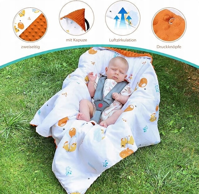 - КРАСИВЫЙ ПОДАРОК — отличный подарок новорожденному в качестве пледа для детского душа. Благодаря 8 отверстиям идеально подходит даже к 5-точечному ремню безопасности. НЕОБХОДИМО при первичном снаряжении новорожденного.
